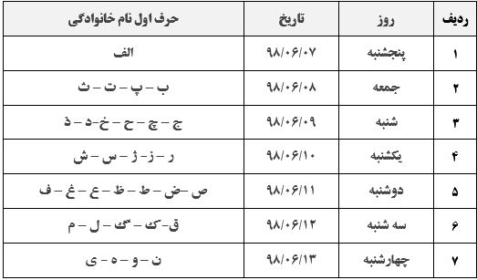 جدول مراجعه داوطلبین برای تشکیل پرونده به شرح ذیل می باشد: