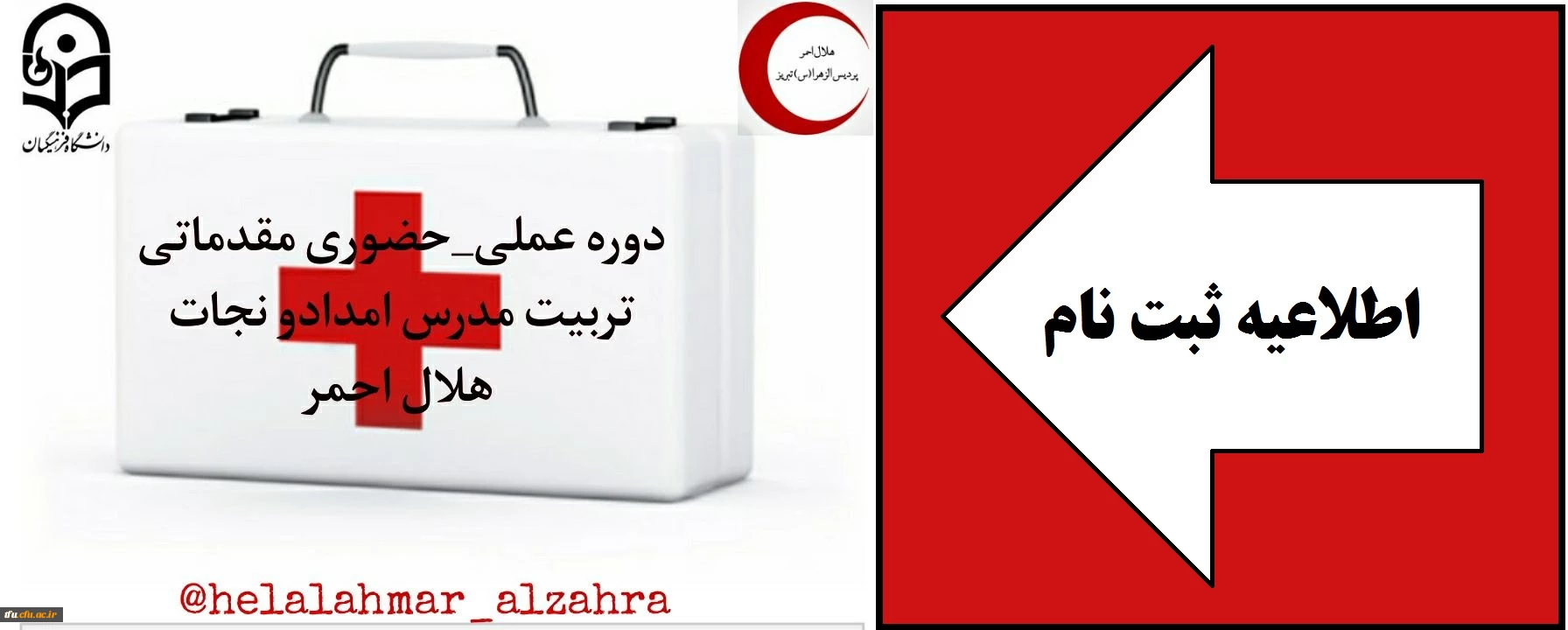 به اطلاع دانشجو معلمان عزیز می رساند که دوره عملی_ حضوری مرحله مقدماتی تربیت مدرس امداد و نجات هلال احمر به شرح زیر انجام می شود: