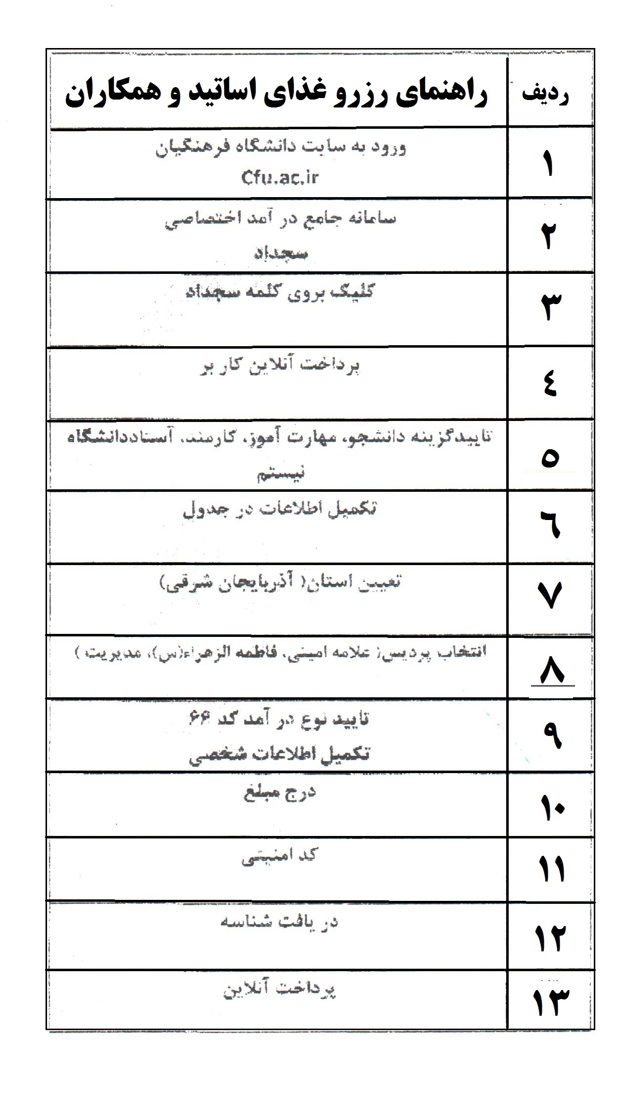 راهنمای رزرو غذای اساتید و همکاران پردیس فاطمه الزهرا(س) تبریز