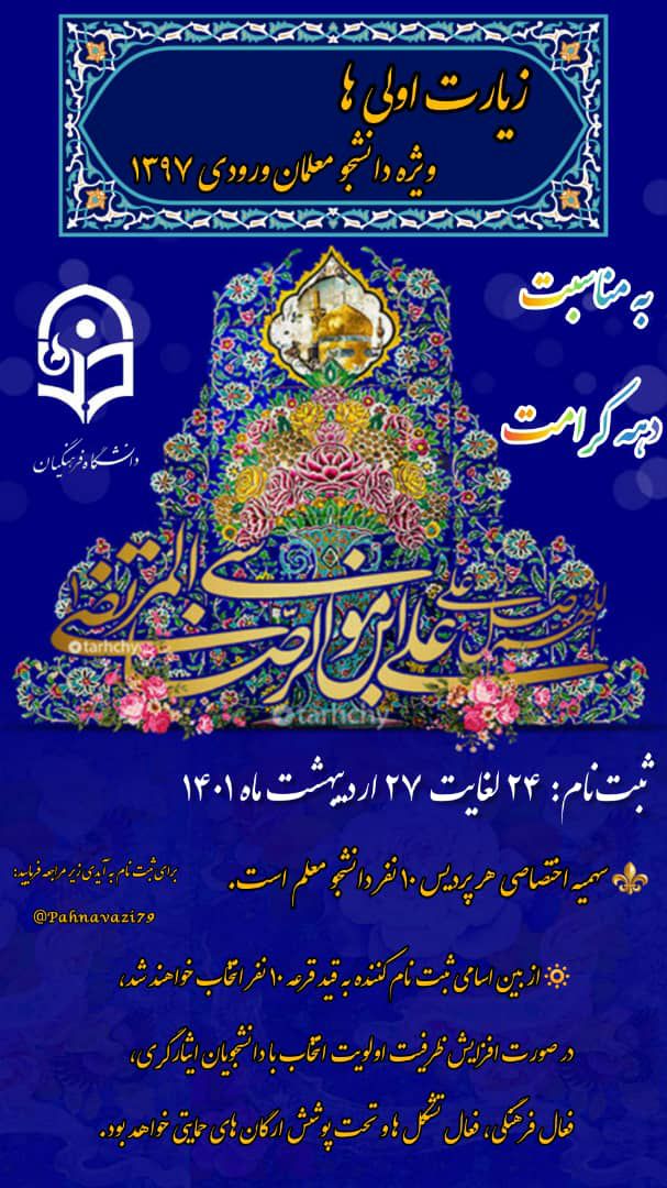 طرح زیارت اولی ها ویژه دانشجو معلمان ورودی ۱۳۹۷