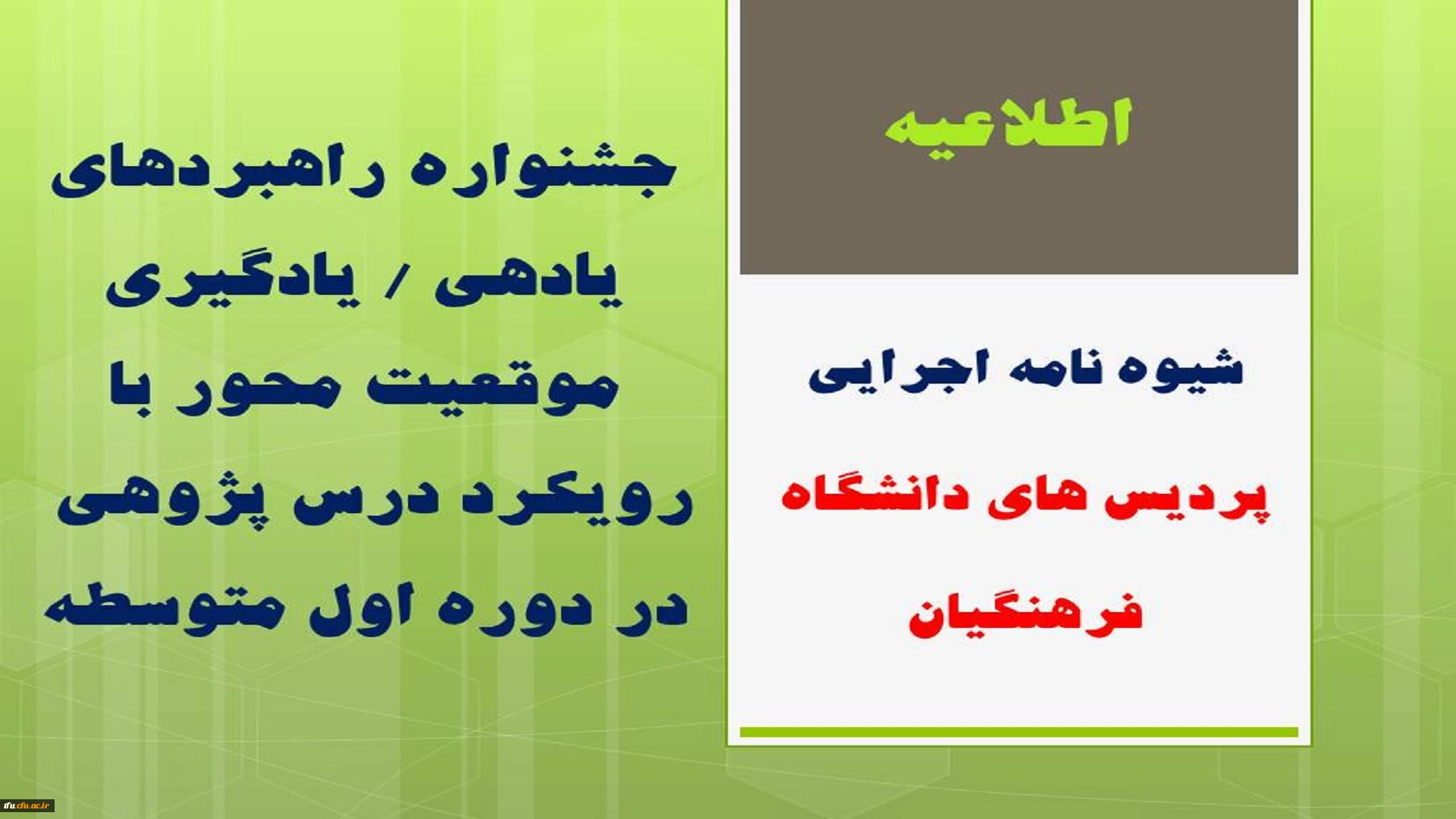 فراخوان جشنواره راهبردهای یادهی / یادگیری موقعیت محور با رویکرد درس پژوهی در دوره اول متوسطه 2