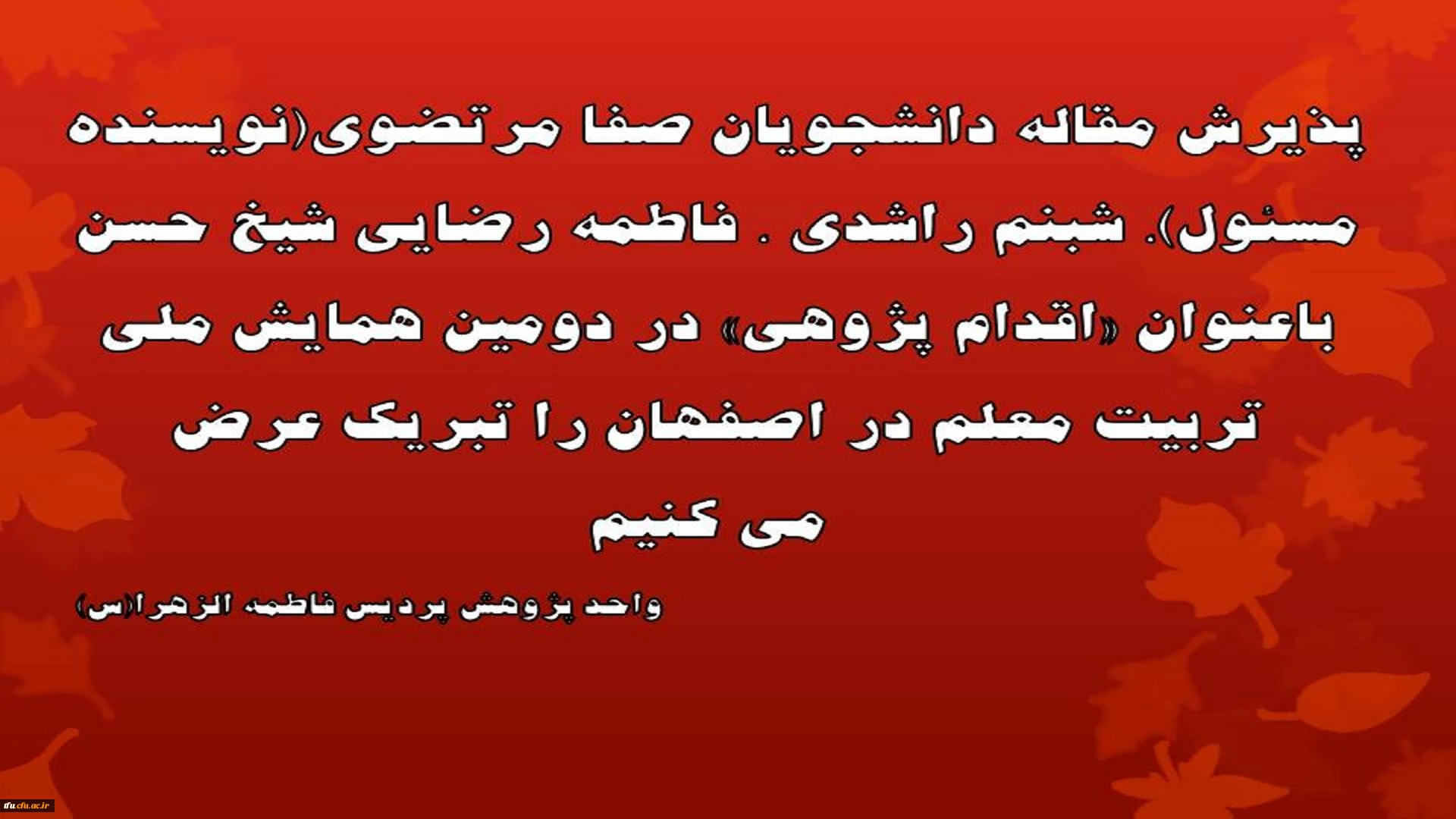 پذیرش مقاله دانشجویان پردیس فاطمه الزهرا(س) در دومین همایش ملی تربیت معلم 2