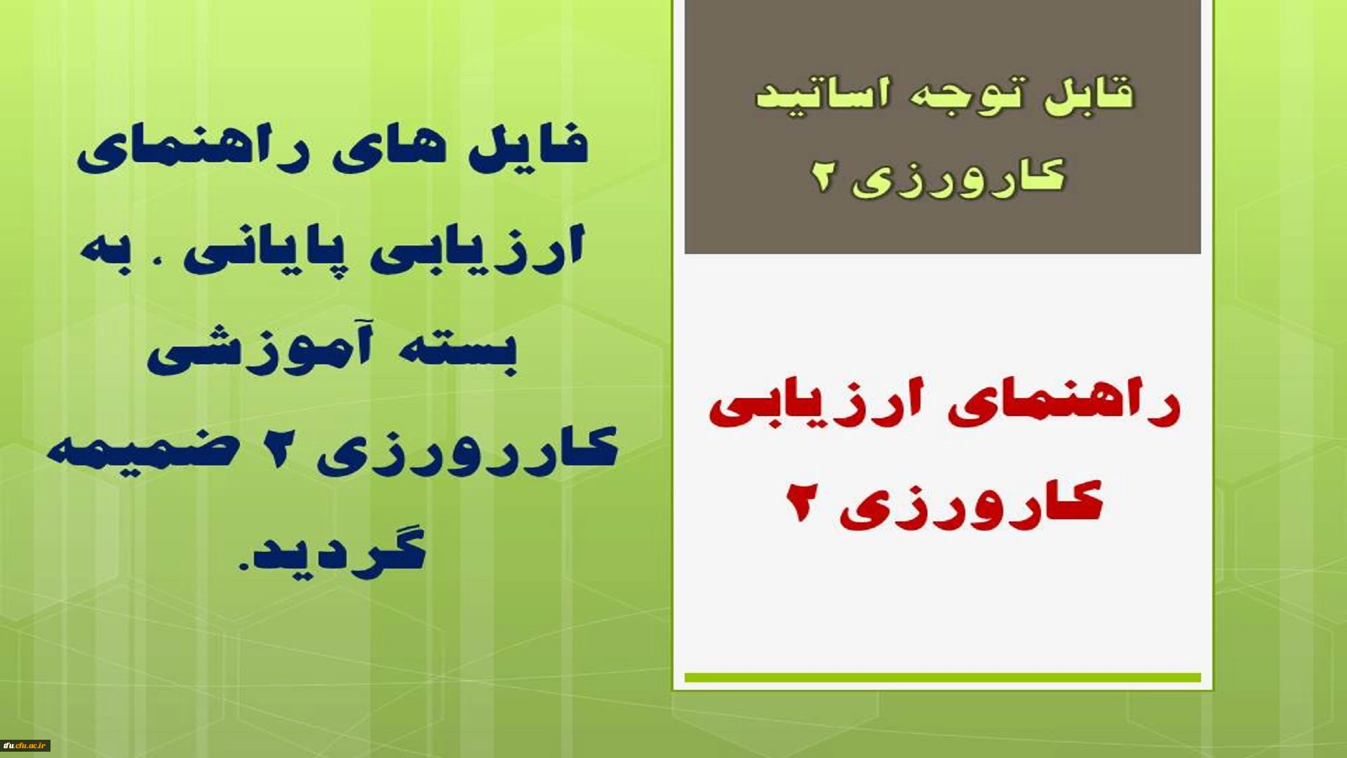 فایل های راهنمای ارزیابی پایانی ، به بسته آموزشی کاررورزی 2 ضمیمه گردید. 2