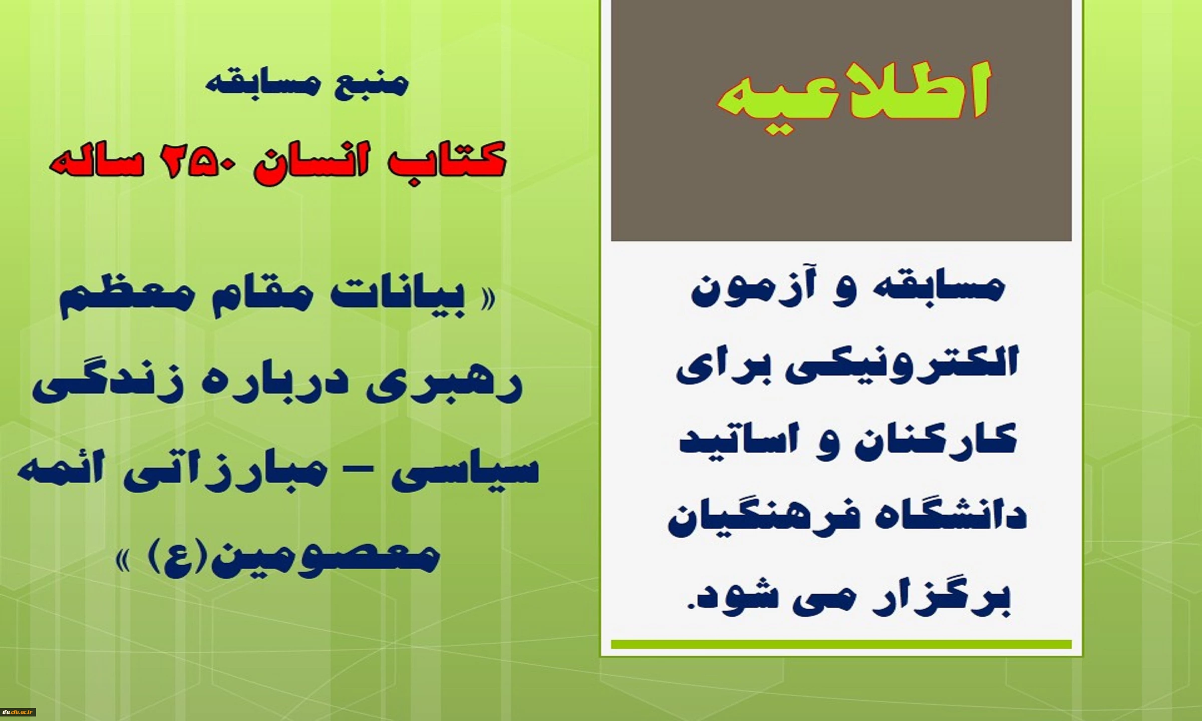 مسابقه و آزمون الکترونیکی برای کارکنان و اساتید دانشگاه فرهنگیان برگزار می شود. 13