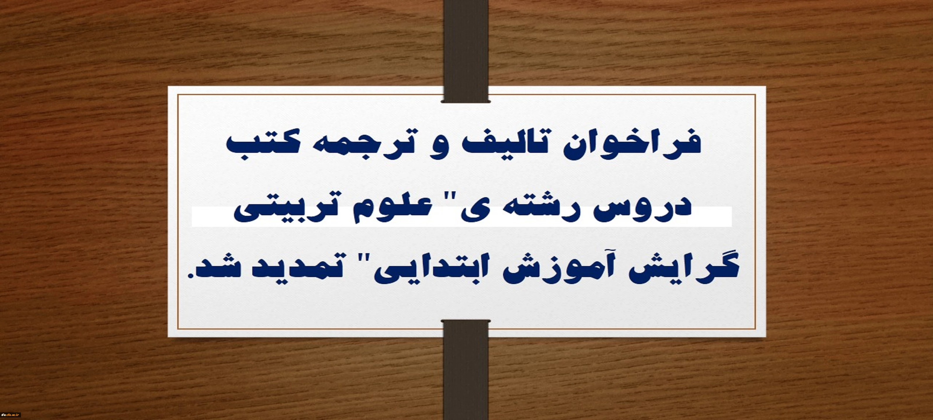 فراخوان تالیف و ترجمه کتب دروس رشته ی" علوم تربیتی گرایش آموزش ابتدایی" تمدید شد. 2