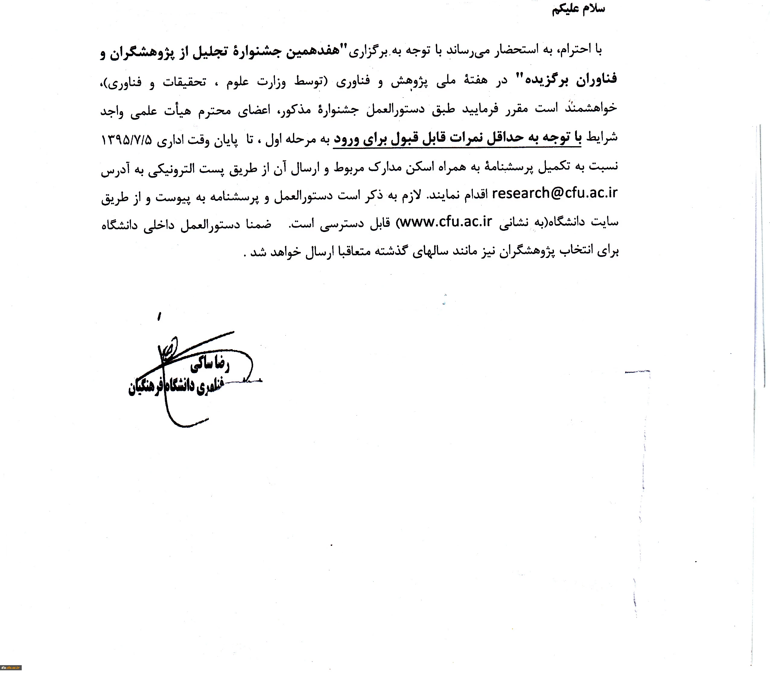 امتیاز دهید : دستورالعمل هفدهمین جشنواره ی تجلیل از پژوهشگران و فناوران برگزیده 3 چهارشنبه 17 شهریور 1395 ساعت 13:56