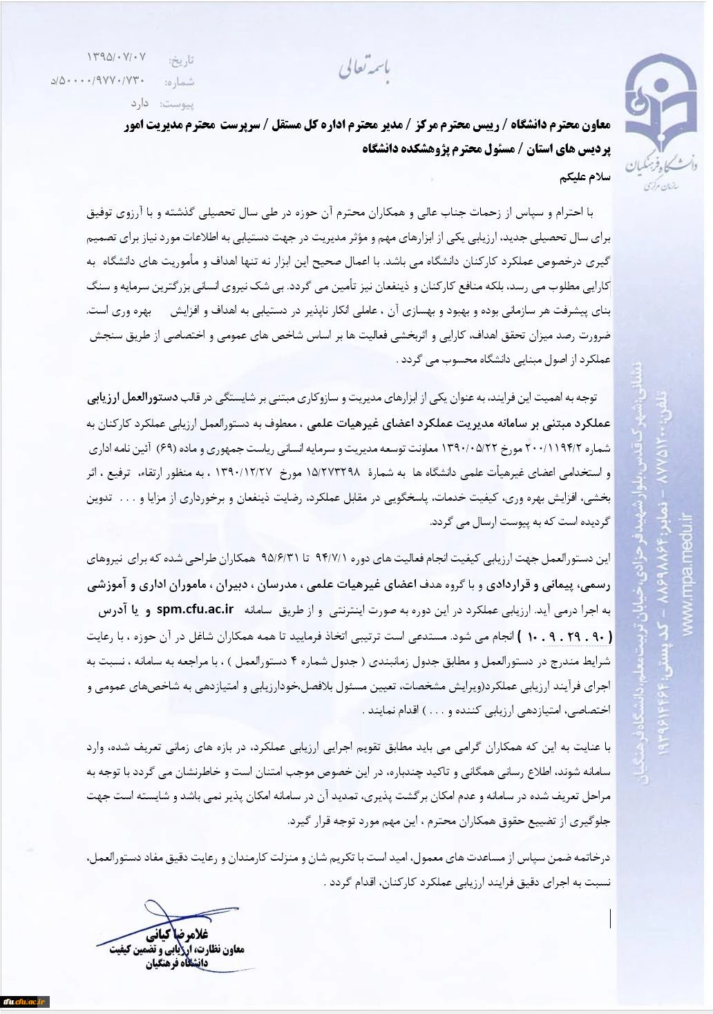 تسریع در تکمیل فرمهای ارزیابی بر اساس بخشنامه ارزیابی عملکرد کارکنان