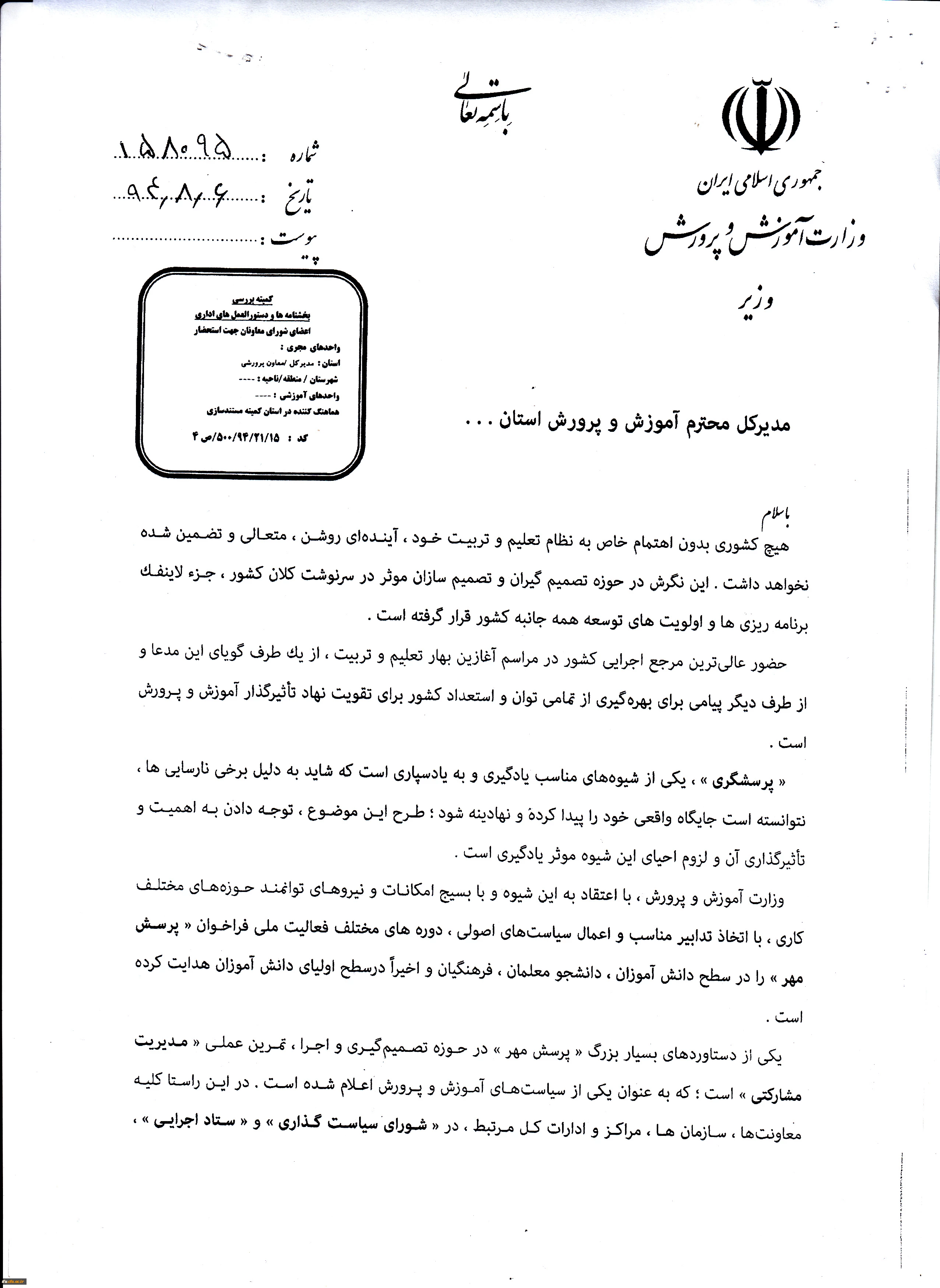 فراخوان پرسش مهر 95 5