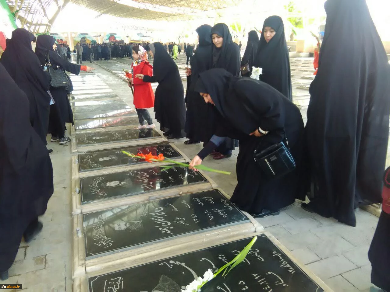 شرکت دانشجو معلمان پردیس فاطمه الزهرا(س) در آیین عطرافشانی و گلباران مزار 186 شهید معلم استان