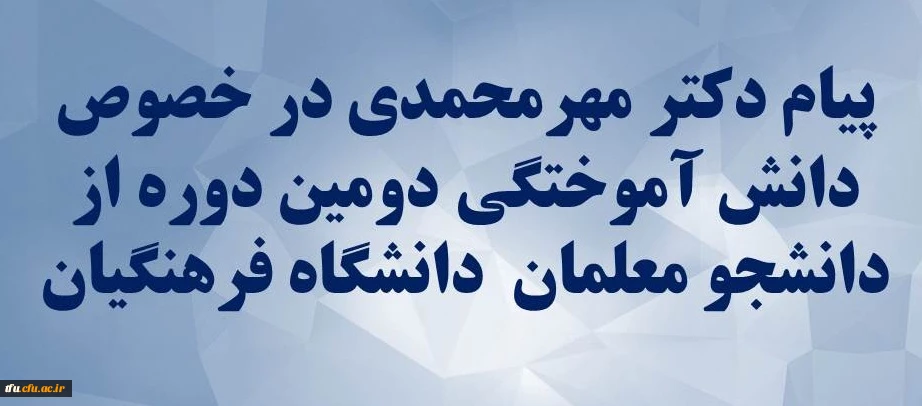 امتیاز دهید : پیام دکتر مهرمحمدی در خصوص دانش آموختگی دانشجو معلمان دانشگاه فرهنگیان 2 چهارشنبه 11 مرداد 1396 ساعت 10:08