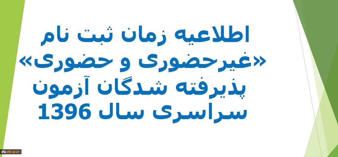 اطلاعیه زمان ثبت نام " غیرحضوری و حضوری" پذیرفته شدگان آزمون سراسری سال 96 2