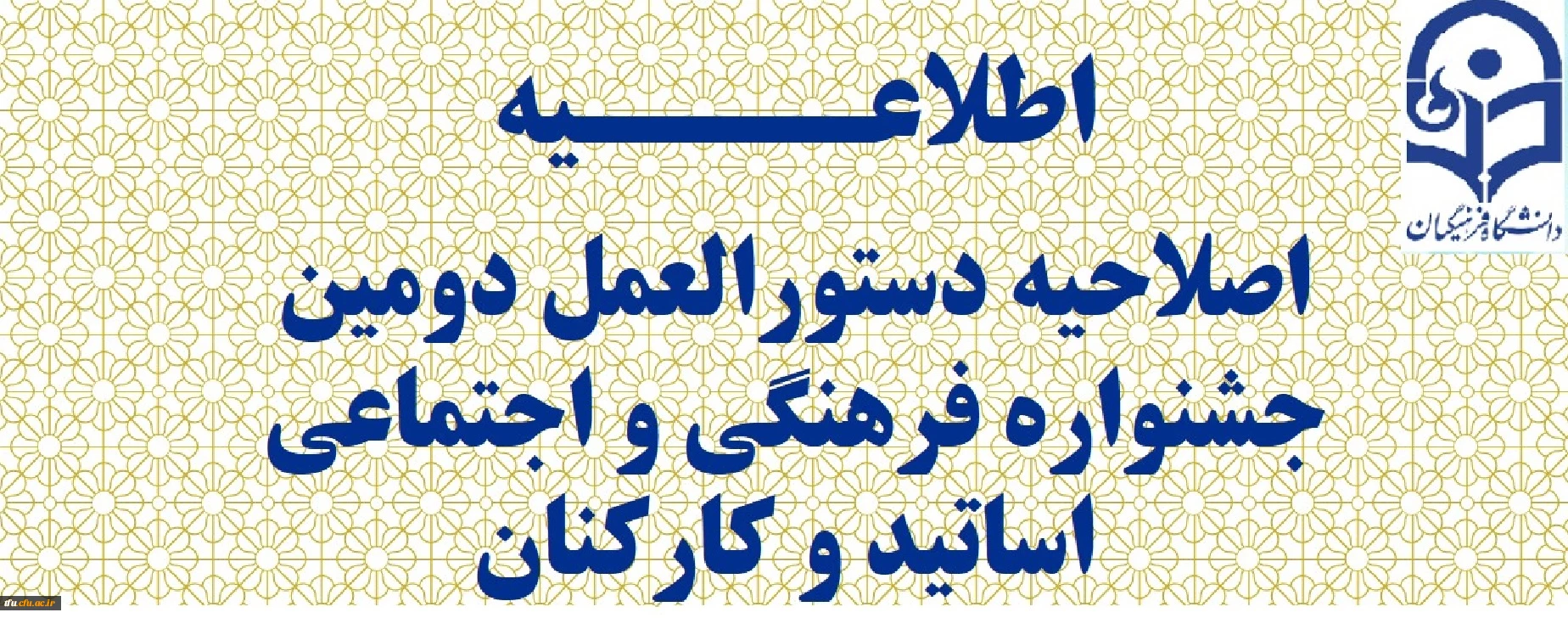 امتیاز دهید : اصلاحیه دستورالعمل دومین جشنواره فرهنگی و اجتماعی اساتید و کارکنان 2 سهشنبه 17 بهمن 1396 ساعت 15:12