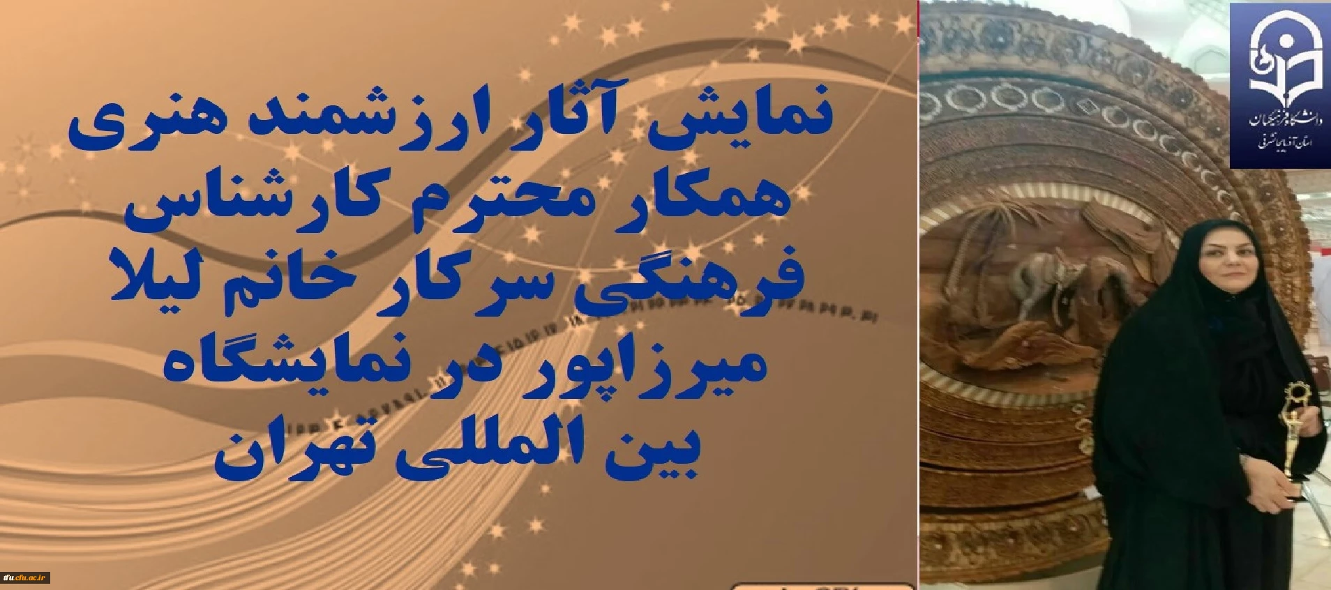 نمایش اثار ارزشمند همکار محترم کارشناس فرهنگی سرکار خانم لیلا میرزاپور در نمایشگاه بین المللی تهران 2
