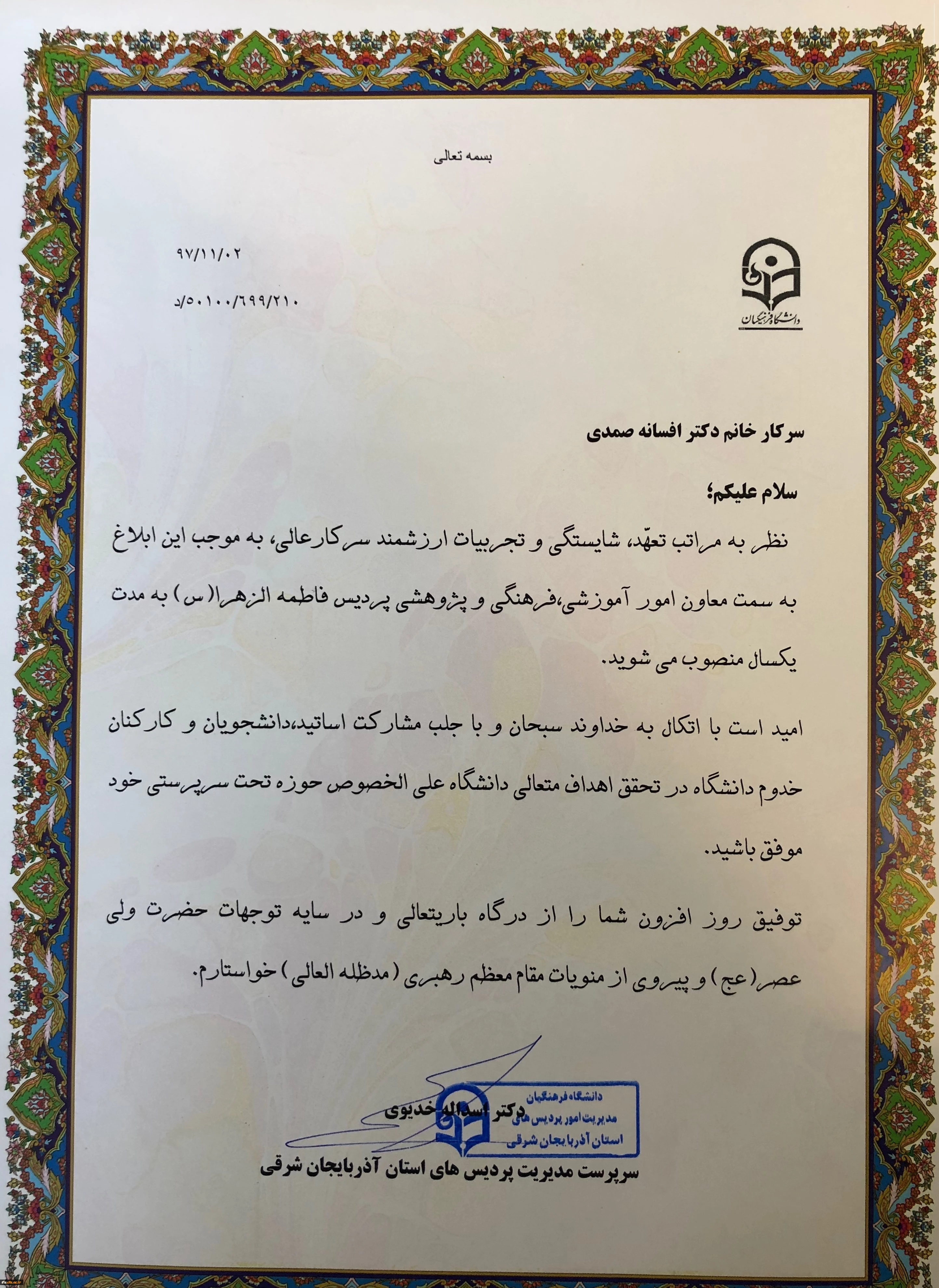 امتیاز دهید : انتصاب معاون آموزشی، فرهنگی و پژوهشی پردیس فاطمه الزهرا(س) 2 چهارشنبه 3 بهمن 1397 ساعت 12:06