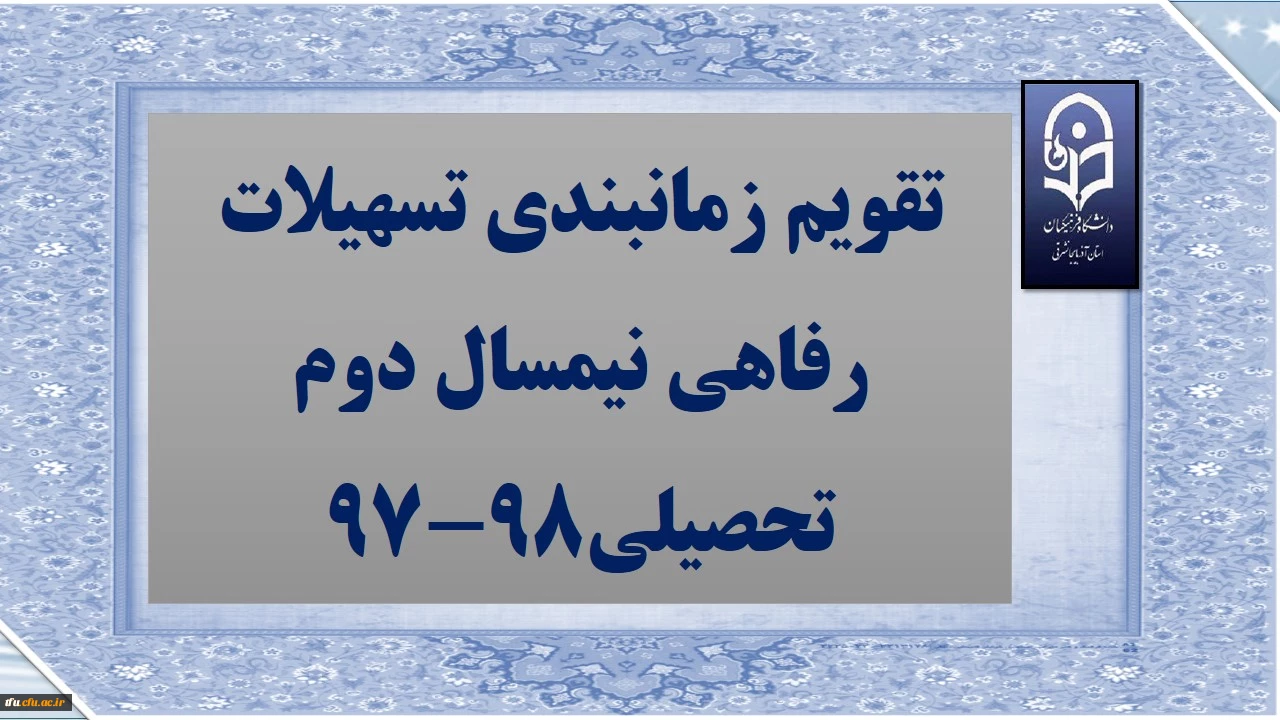 تقویم زمانبندی تسهیلات رفاهی نیمسال دوم تحصیلی98-97 2