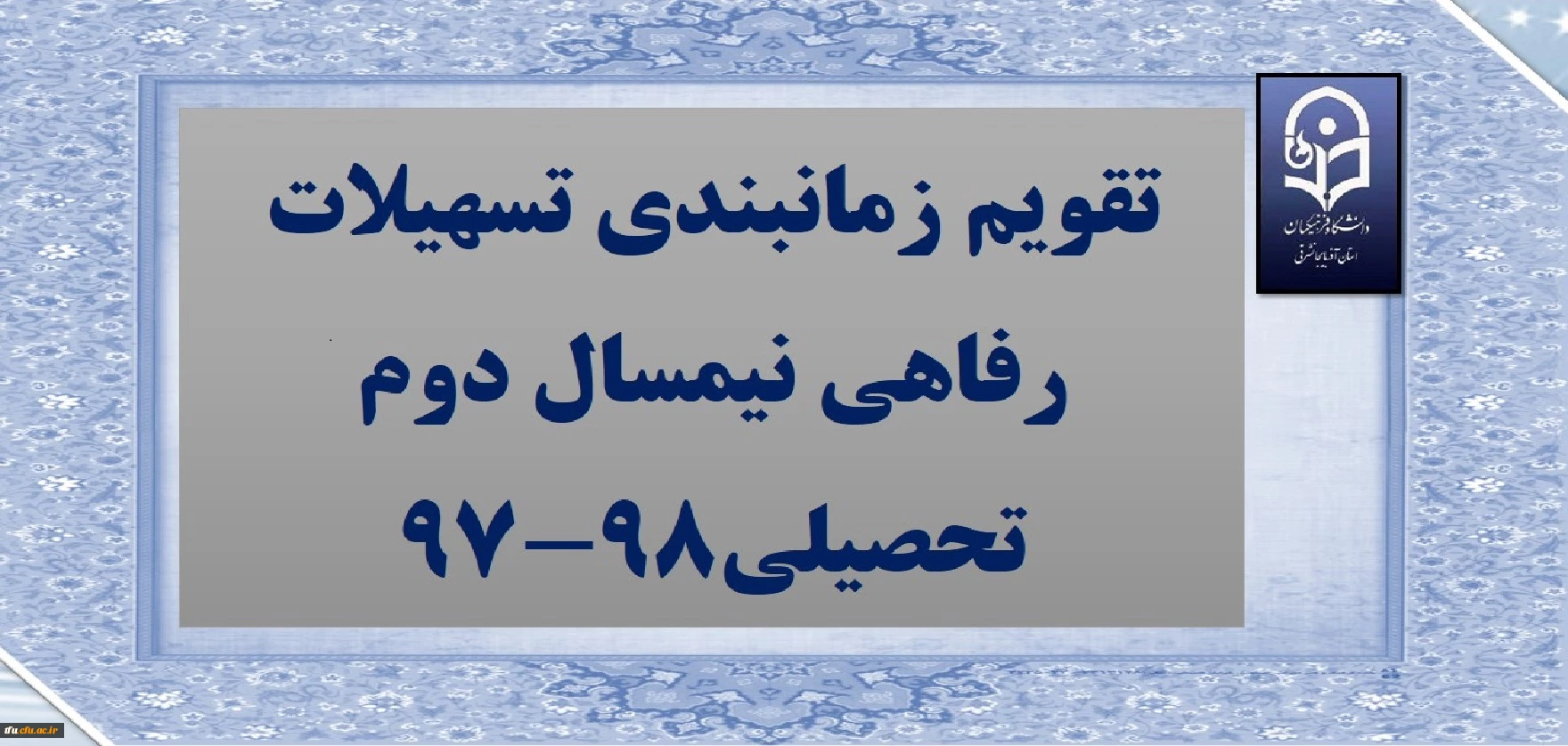 تقویم زمانبندی تسهیلات رفاهی نیمسال دوم تحصیلی98-97 2