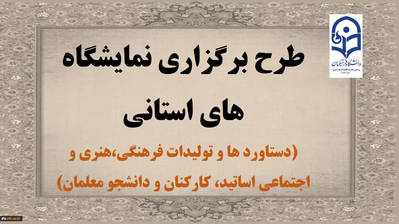 معاونت فرهنگی اجتماعی دانشگاه فرهنگیان برگزار می کند: طرح برگزاری نمایشگاه های استانی دستاورد ها و تولیدات فرهنگی،هنری و اجتماعی 2