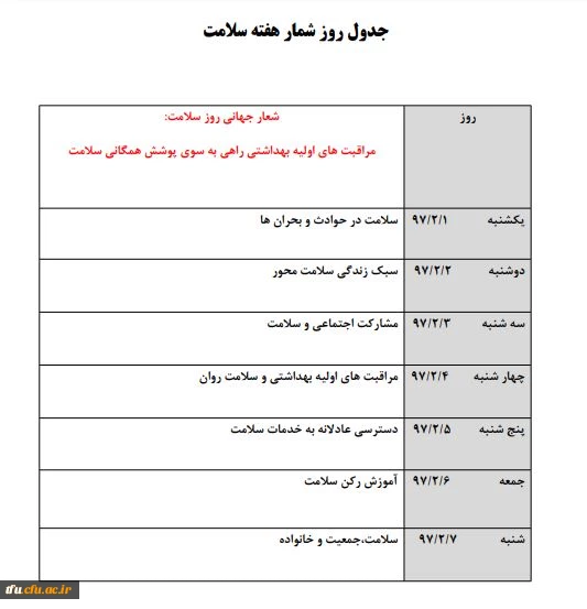 جدول روز شمار