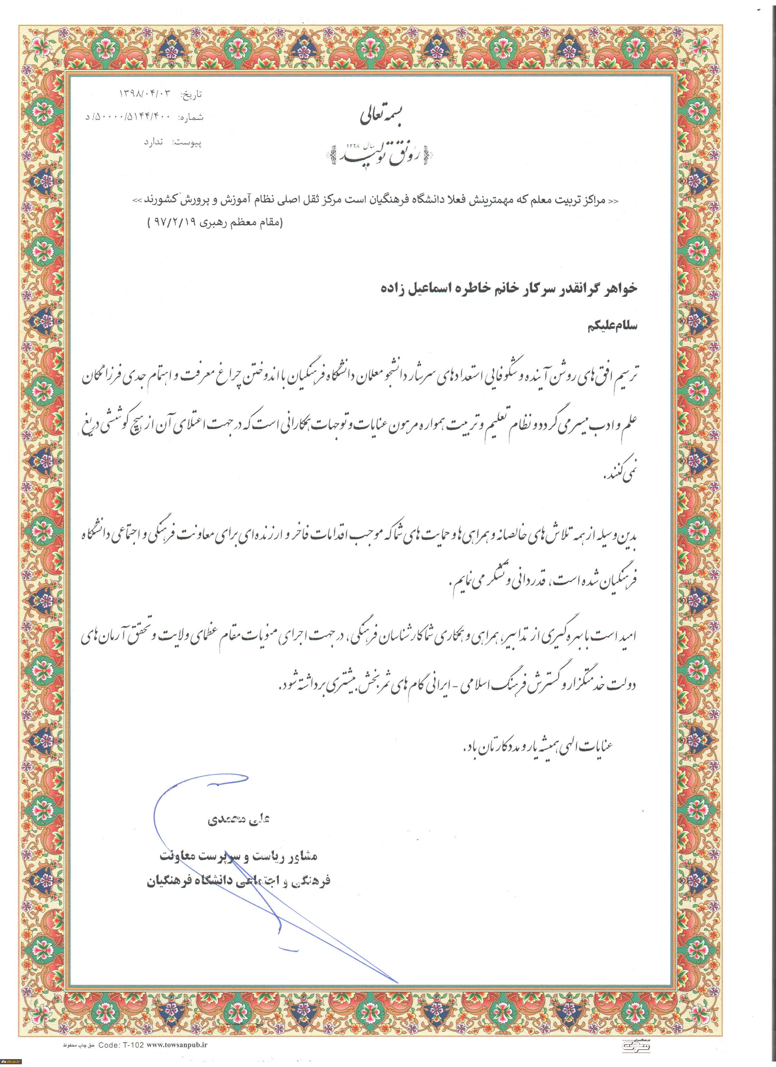 در حاشیه اجلاس مدیران و روسای پردیس ها و مراکز دانشگاه فرهنگیان سراسر کشور صورت گرفت: تجلیل از فعالین فرهنگی پردیس فاطمه الزهرا(س) 2