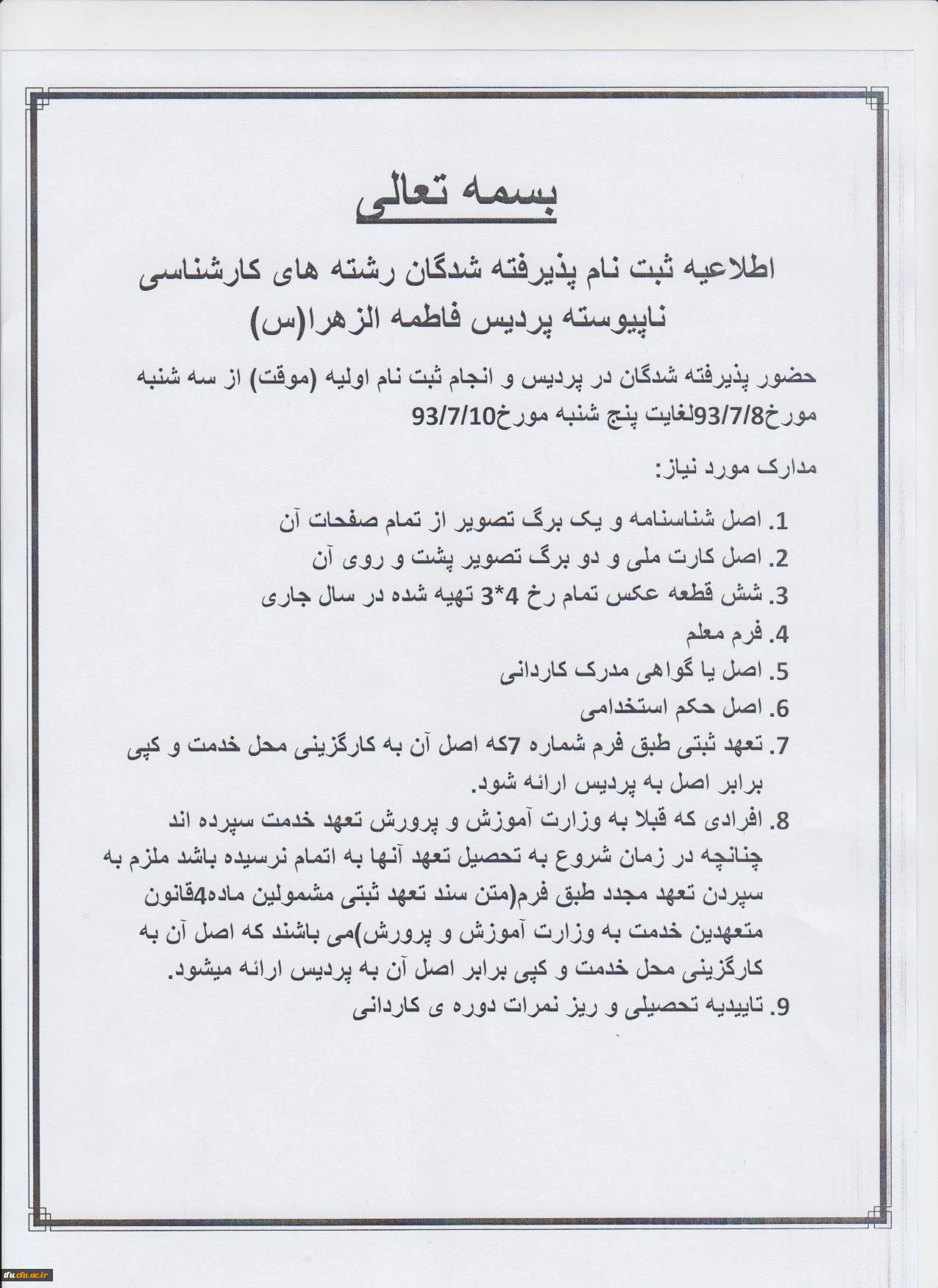 ثبت نام پذیرفته شدگاه رشته های کارشناسی ناپیوسته 2