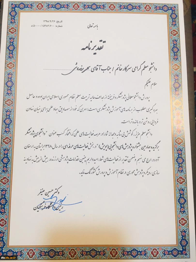 پذیرفته شدگان در جشنواره پویش کشوری توسط دانشجو معلمان پردیس فاطمه الزهرا(س) تبریز 2