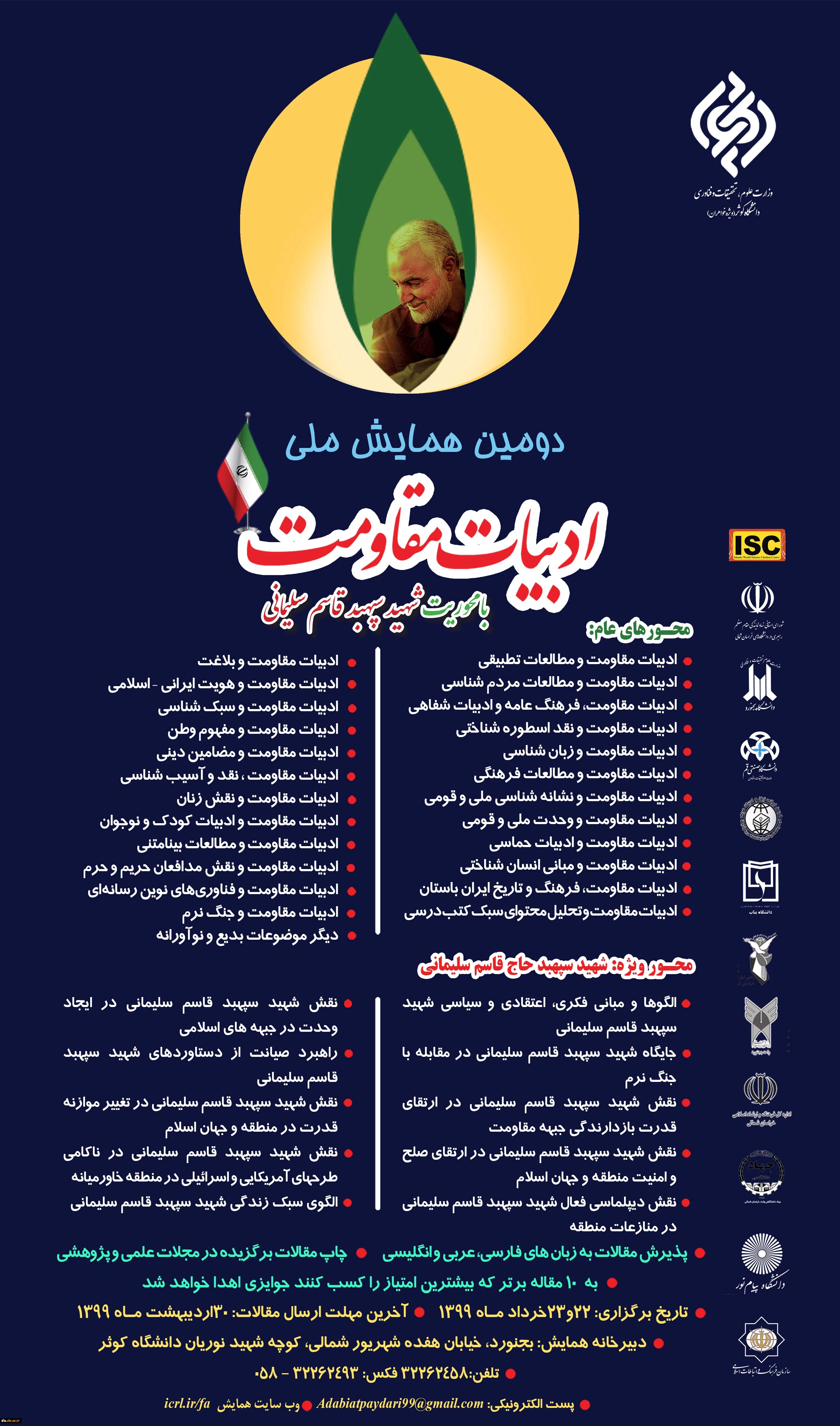 امتیاز دهید : فراخوان دومین همایش ملی ادبیات مقاومت با محوریت شهید سپهبد قاسم سلیمانی 2 شنبه 5 بهمن 1398 ساعت 11:27