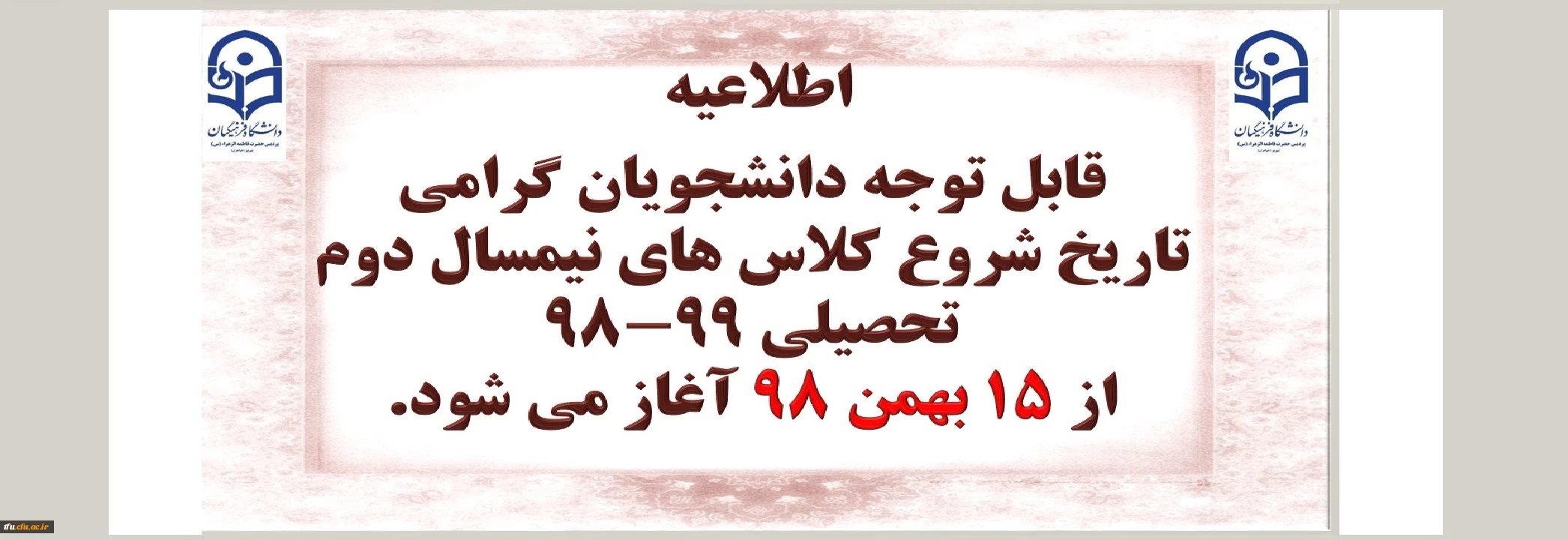 تاریخ شروع کلاس های نیمسال دوم تحصیلی 99-98 2