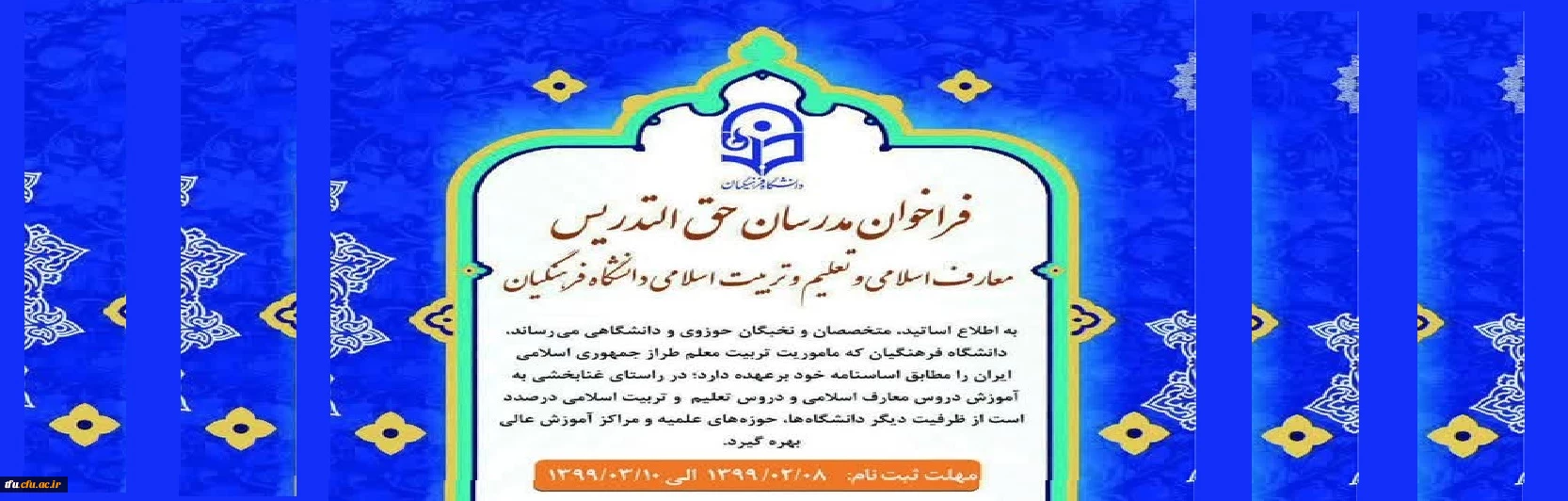 فراخوان مدرسان حق التدریس معارف اسلامی و تعلیم و تربیت اسلامی دانشگاه فرهنگیان 3