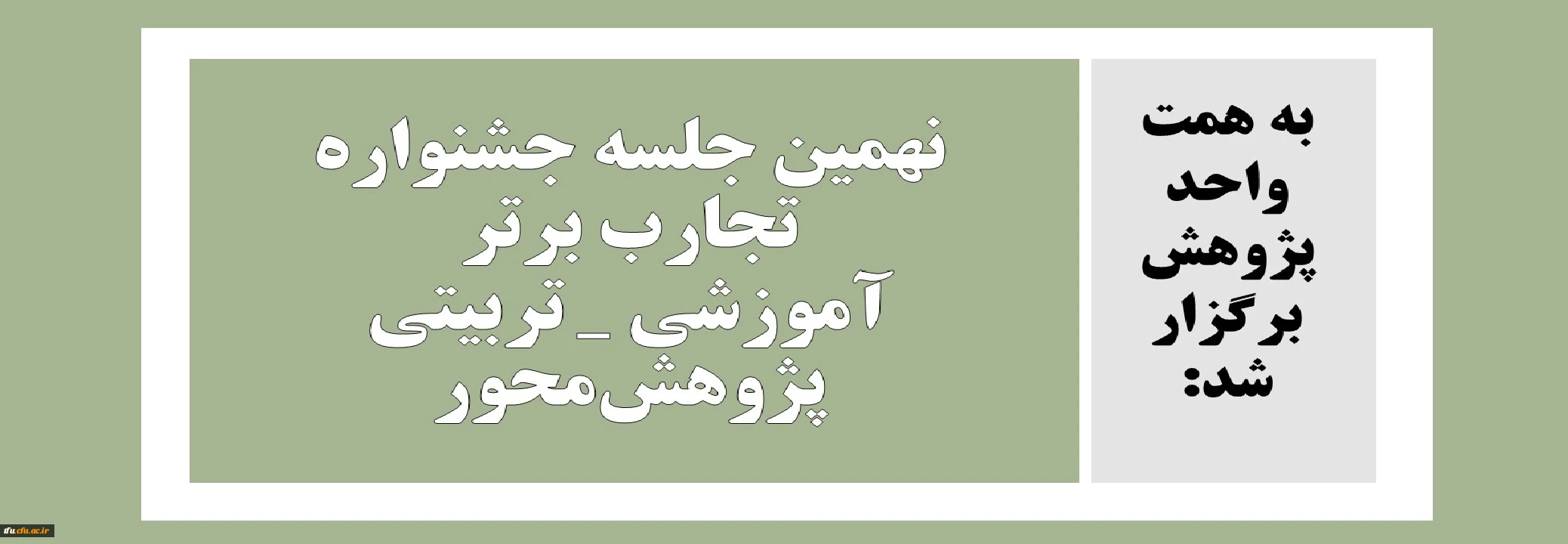 امتیاز دهید : نهمین جلسه جشنواره تجارب برتر آموزشی _ تربیتی پژوهشمحور 10 چهارشنبه 17 اردیبهشت 1399 ساعت 17:45