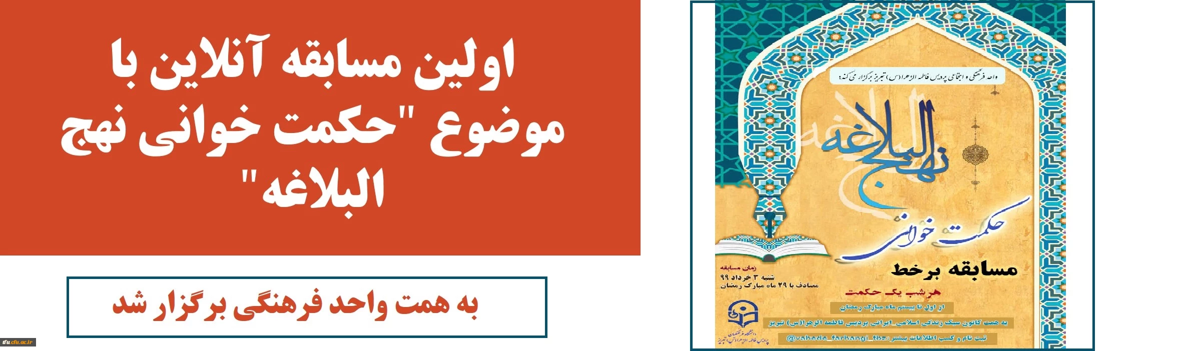 امتیاز دهید : اولین مسابقه آنلاین با موضوع "حکمت خوانی نهج البلاغه" 2 سهشنبه 6 خرداد 1399 ساعت 15:40
