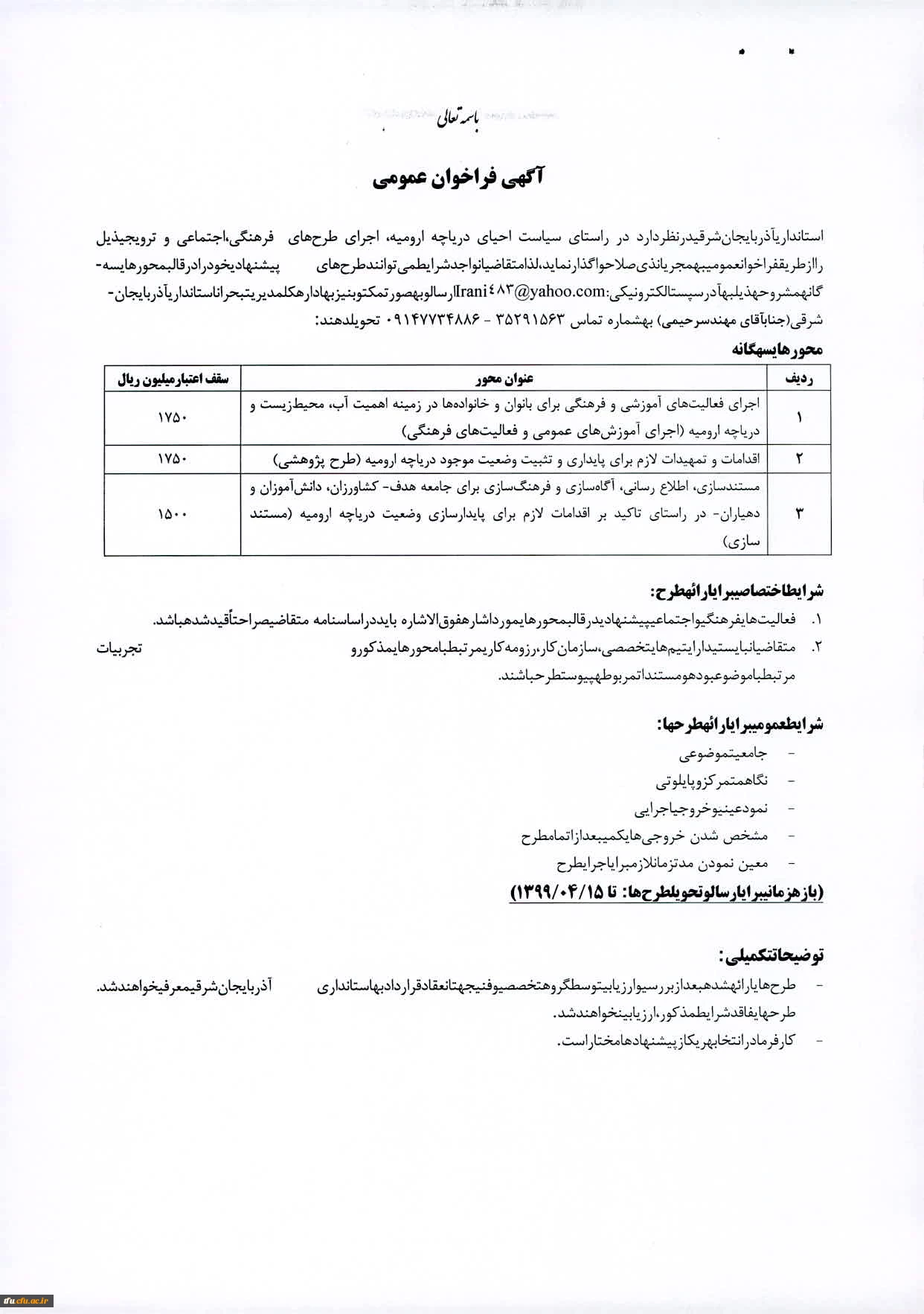 فراخوان اجرای طرح های فرهنگی، اجتماعی و ترویجی استانداری