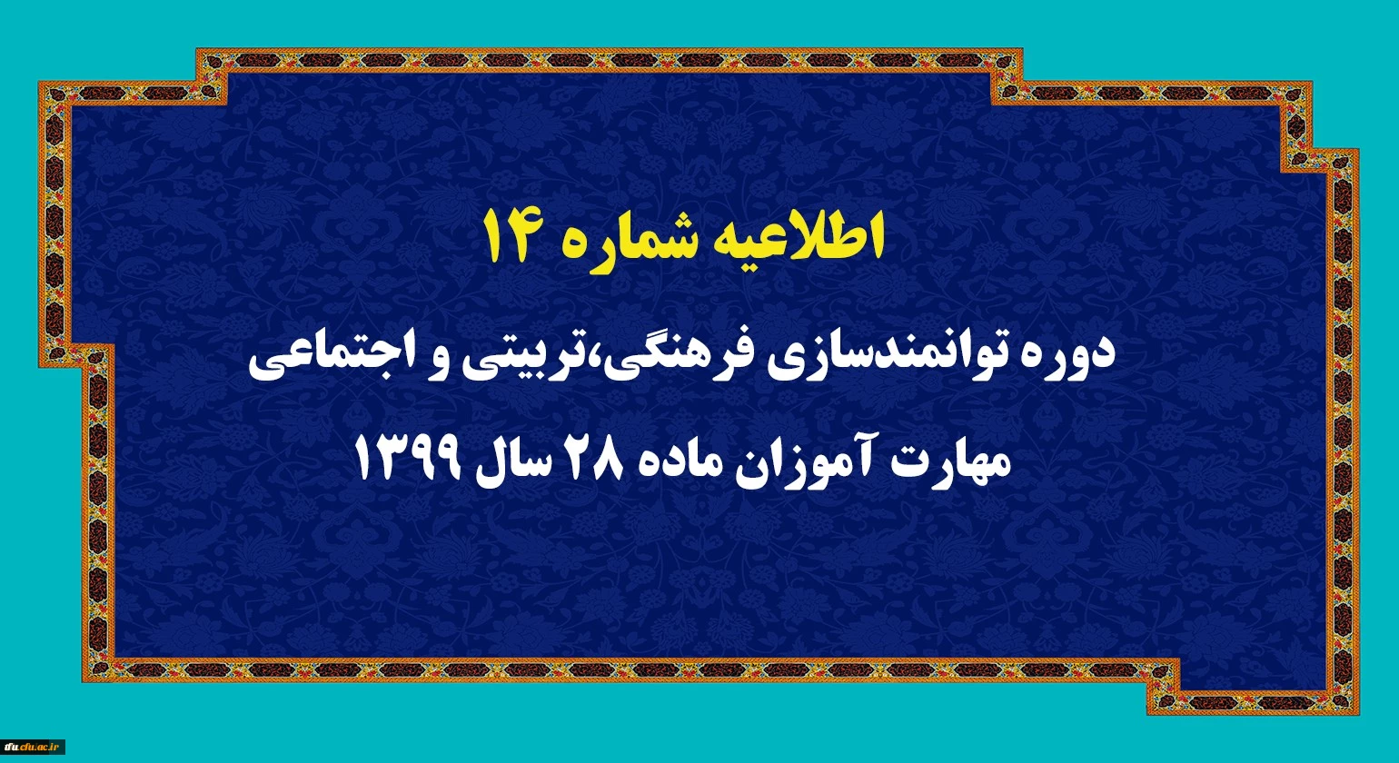 اطلاعیه شماره 14 دوره توانمندسازی فرهنگی،تربیتی و اجتماعی مهارت آموزان ماده 28 سال 1399 2