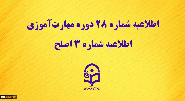 امتیاز دهید : اطلاعیه شماره 28 دوره مهارت آموزی، اطلاعیه شماره 3 اصلح 2 سهشنبه 18 آذر 1399 ساعت 9:41