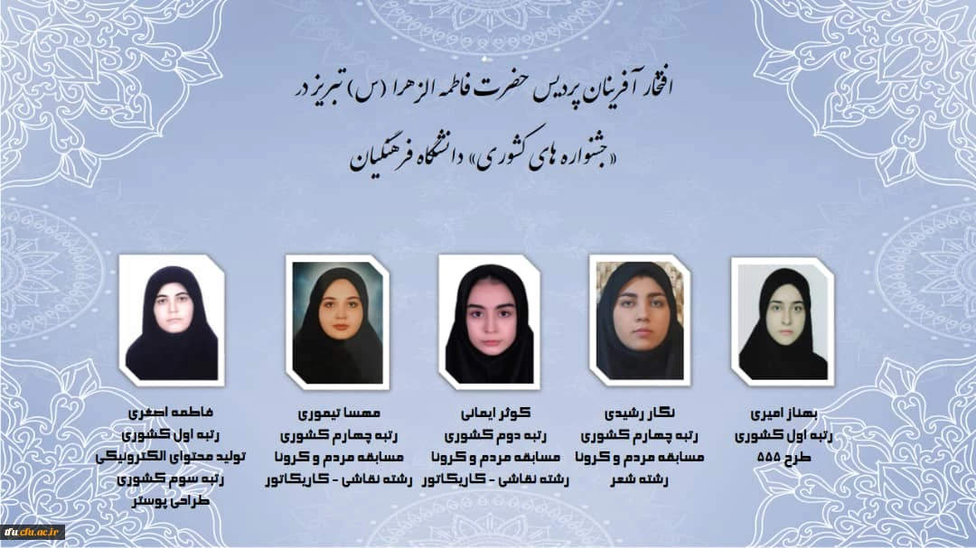 افتخار آفرینی دانشجویان پردیس فاطمه الزهرا(س) در جشنواره های کشوری دانشگاه فرهنگیان 2