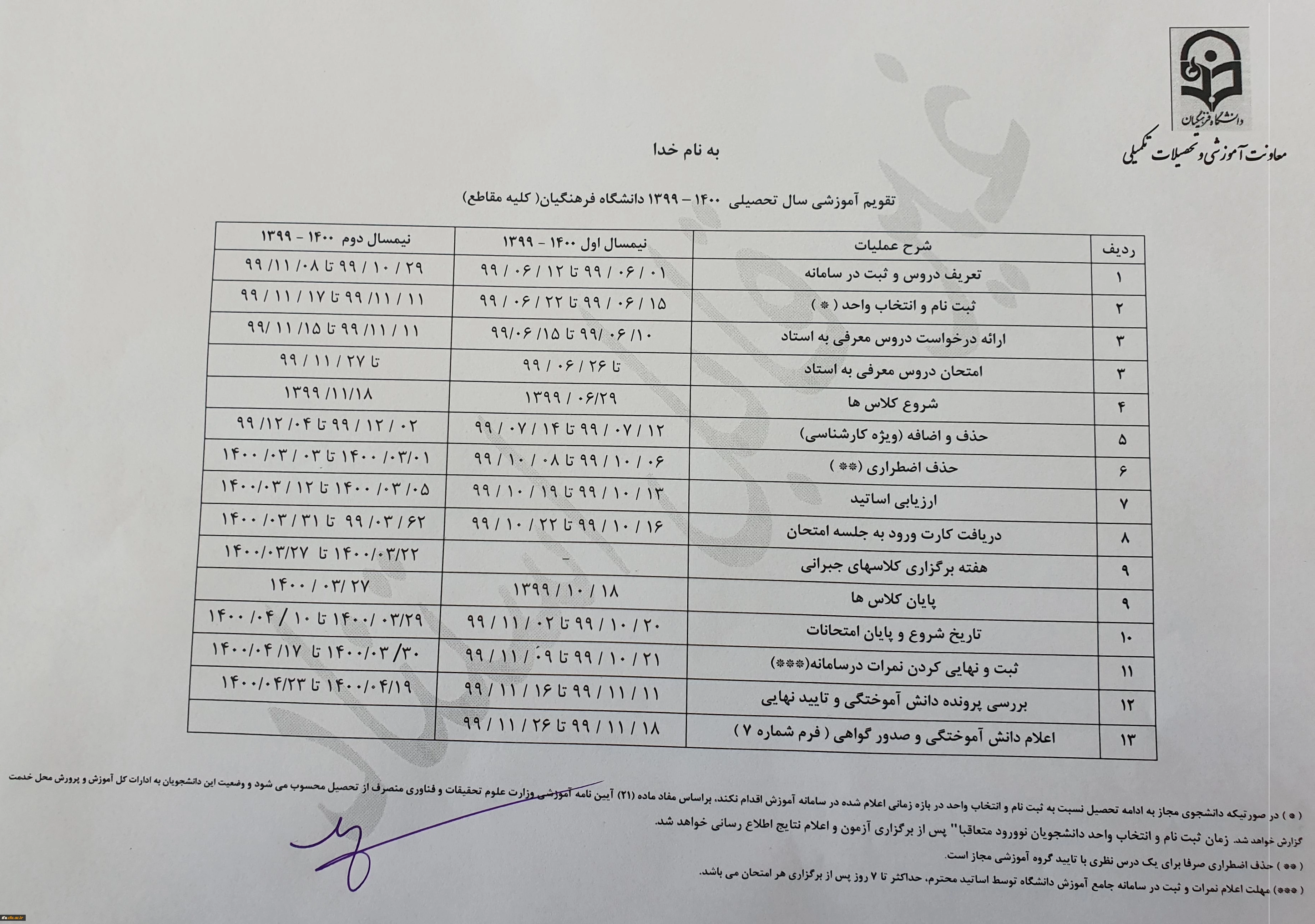 تقویم آموزشی سال تحصیلی سال 1400-1399 3