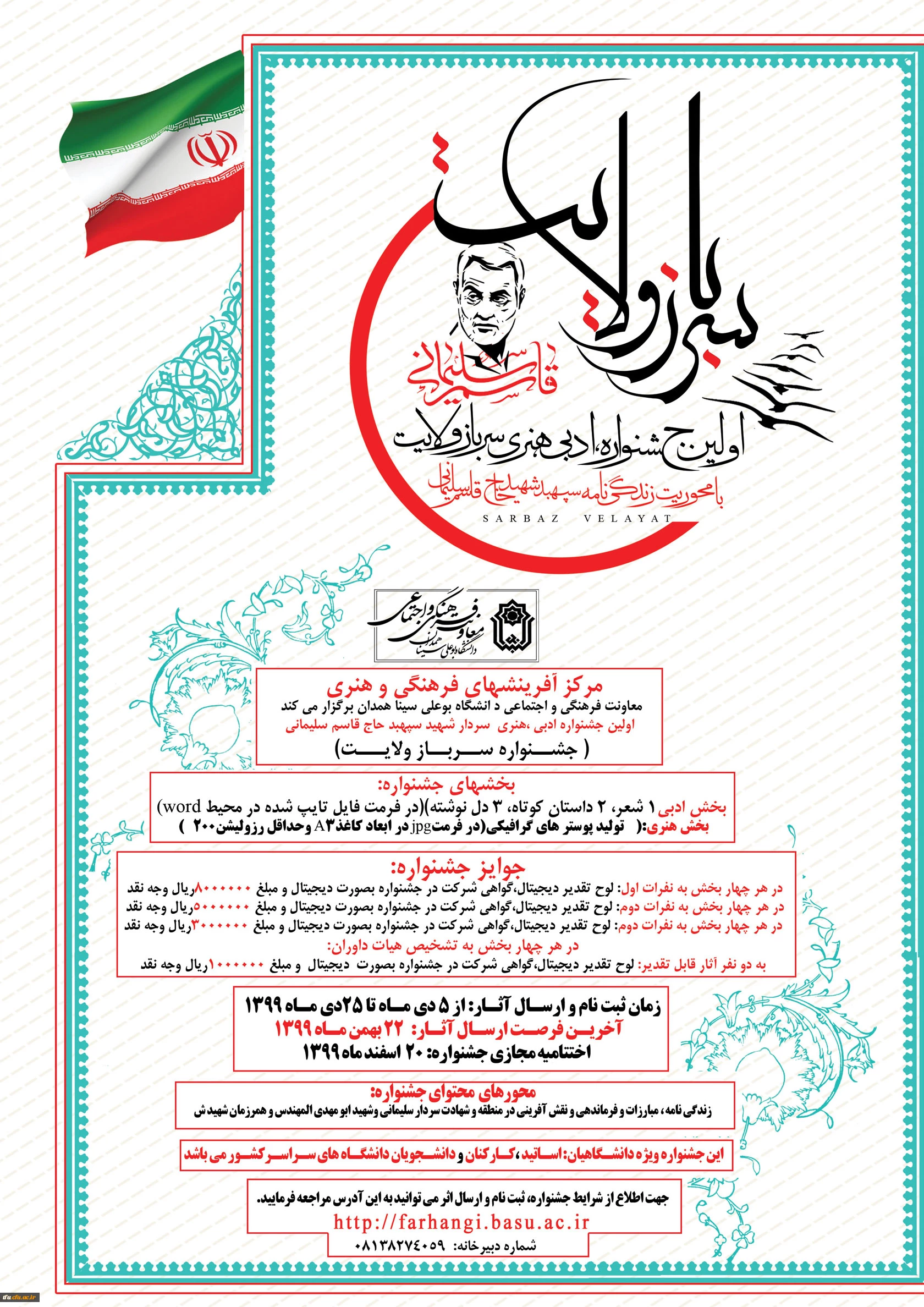 امتیاز دهید : اولین جشنواره ادبی هنری سرباز ولایت با همکاری دانشگاه بوعلی همدان 2 یکشنبه 5 بهمن 1399 ساعت 10:13