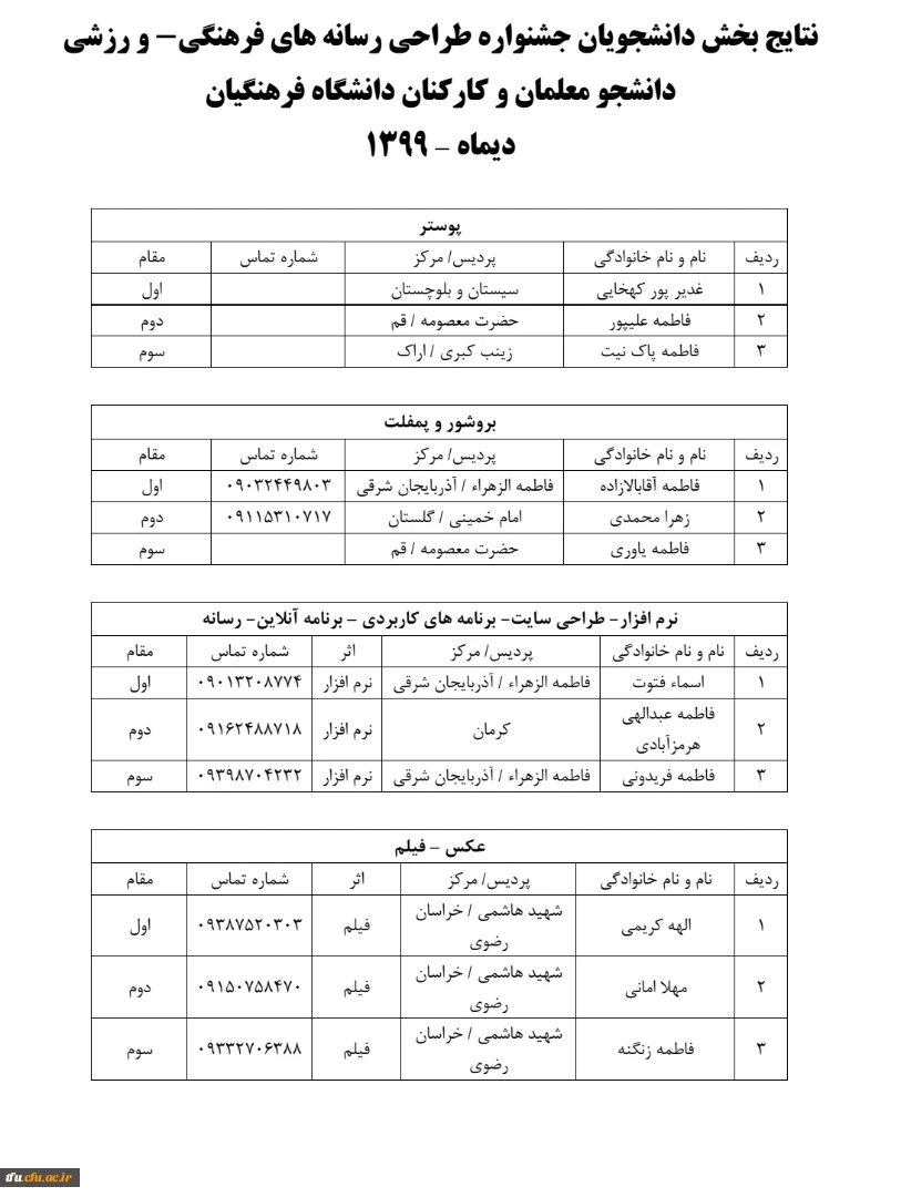 کسب مقام های نخست در جشنواره طراحی رسانه ای فرهنگی- ورزشی دانشجو معلمان دانشگاه فرهنگیان 3
