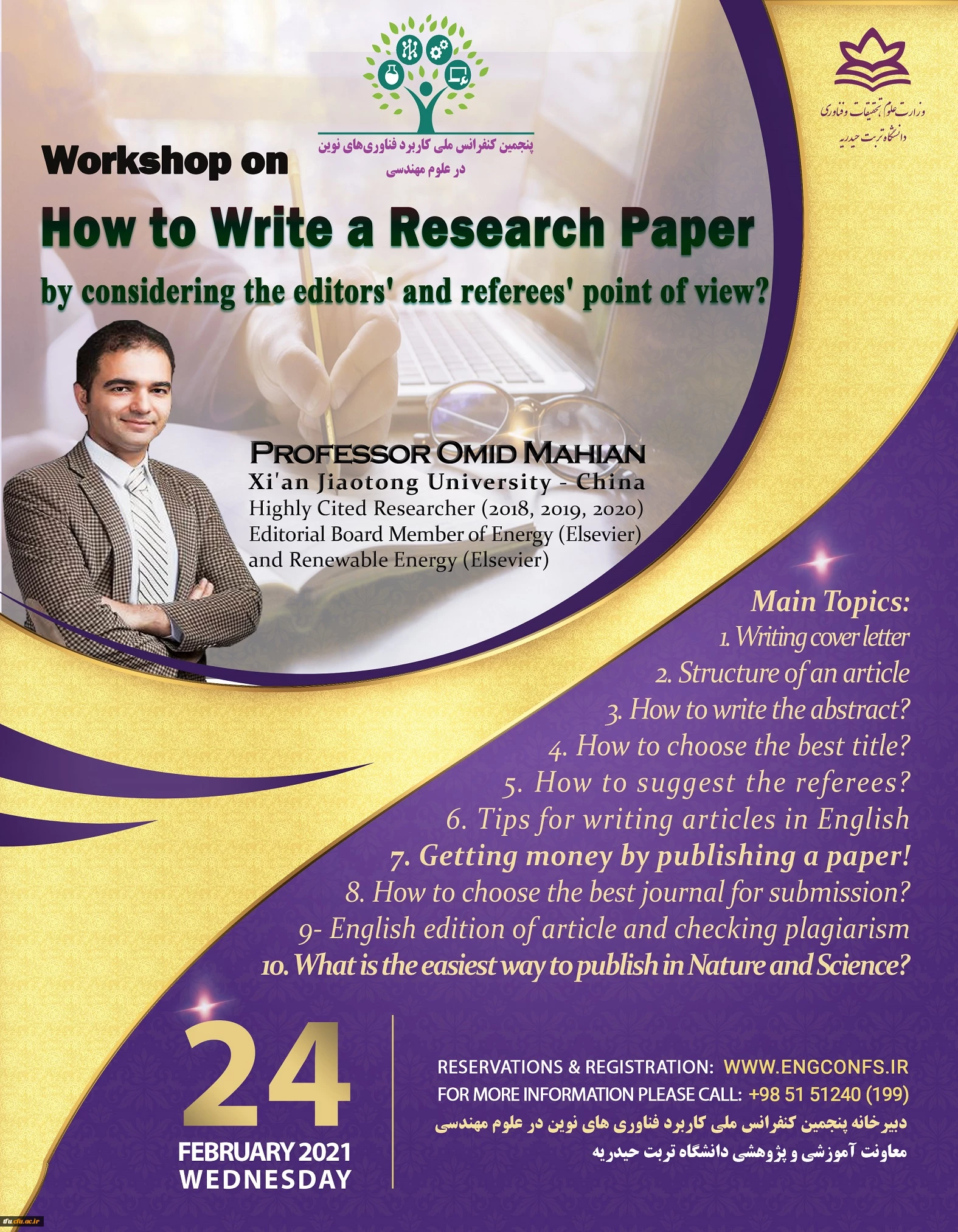 امتیاز دهید : کارگاه بین المللی نحوه نگارش مقالات علمی برای مجلات معتبر خارجی 2 دوشنبه 4 اسفند 1399 ساعت 11:36
