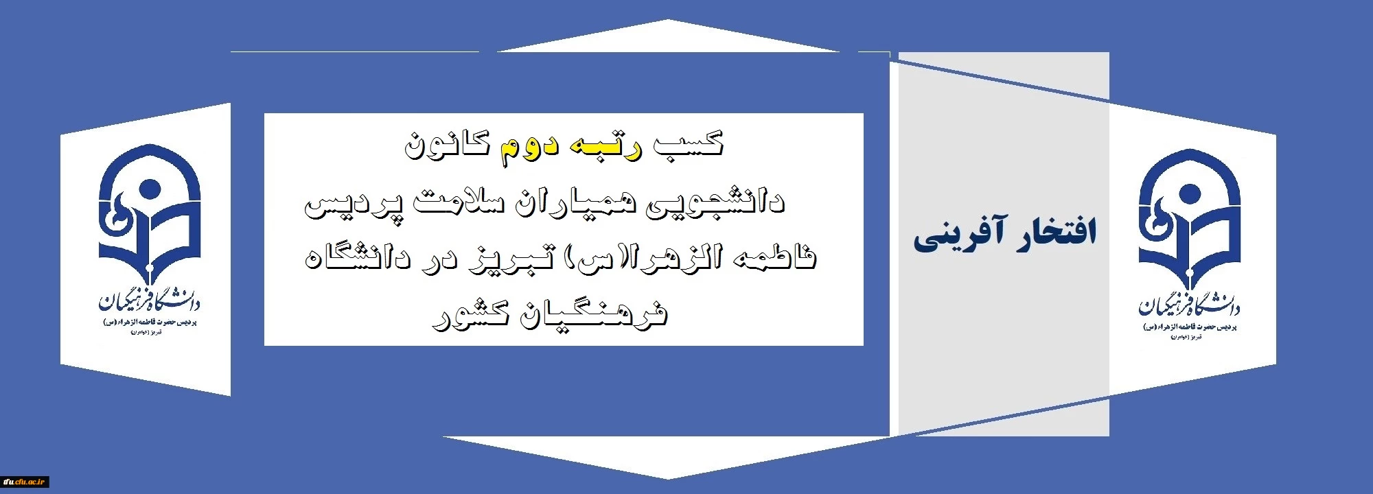 کسب رتبه دوم کانون دانشجویی همیاران سلامت پردیس فاطمه الزهرا(س) تبریز در دانشگاه فرهنگیان کشور 2