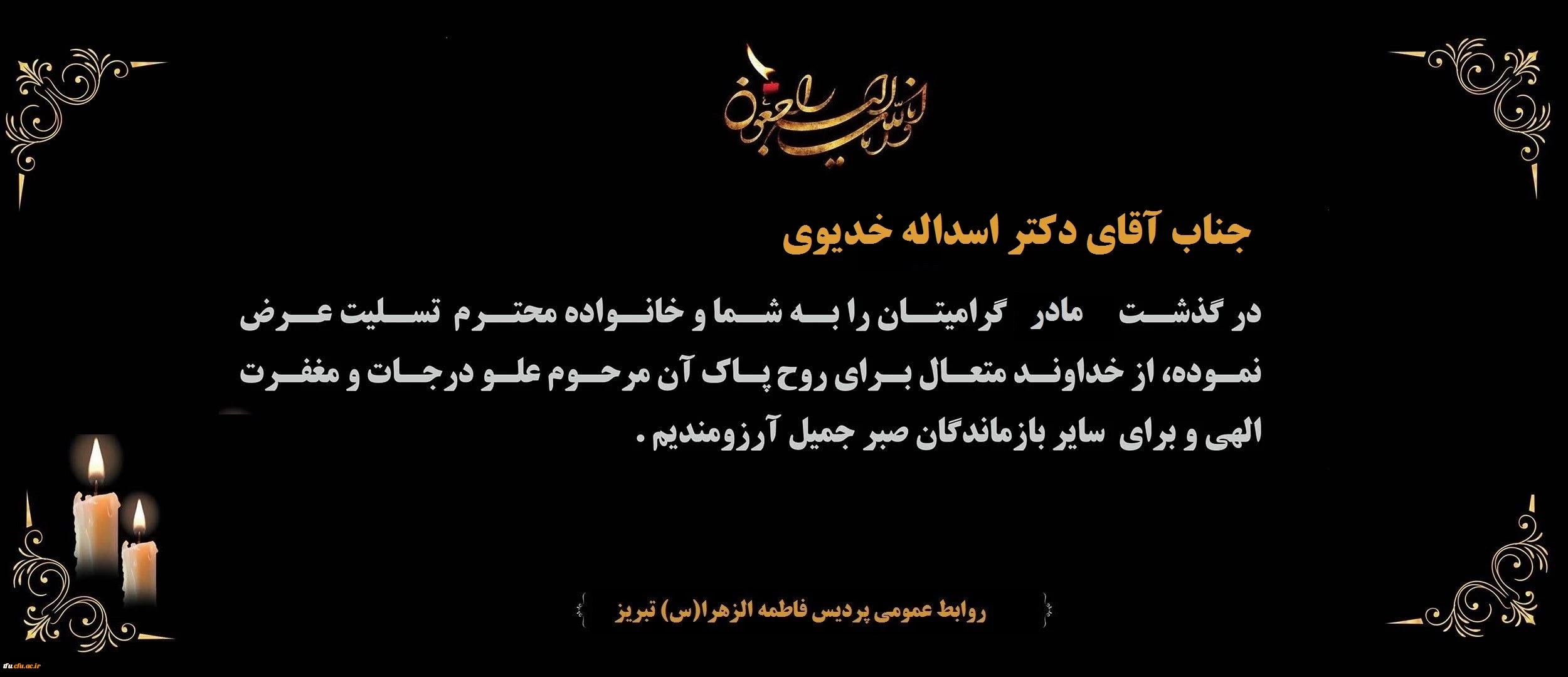 امتیاز دهید : پیام تسلیت درگذشت مادر گرامی جناب آقای دکتر اسداله خدیوی 2 دوشنبه 2 فروردین 1400 ساعت 9:46