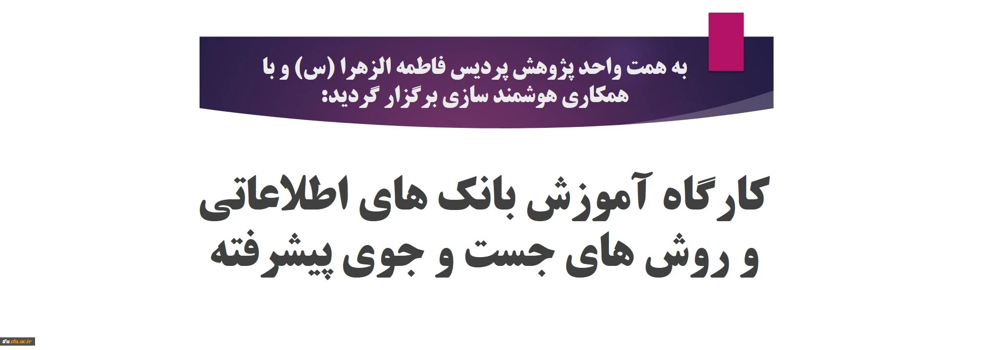 امتیاز دهید : کارگاه آموزش بانک های اطلاعاتی و روش های جست و جوی پیشرفته 2 جمعه 27 فروردین 1400 ساعت 23:01