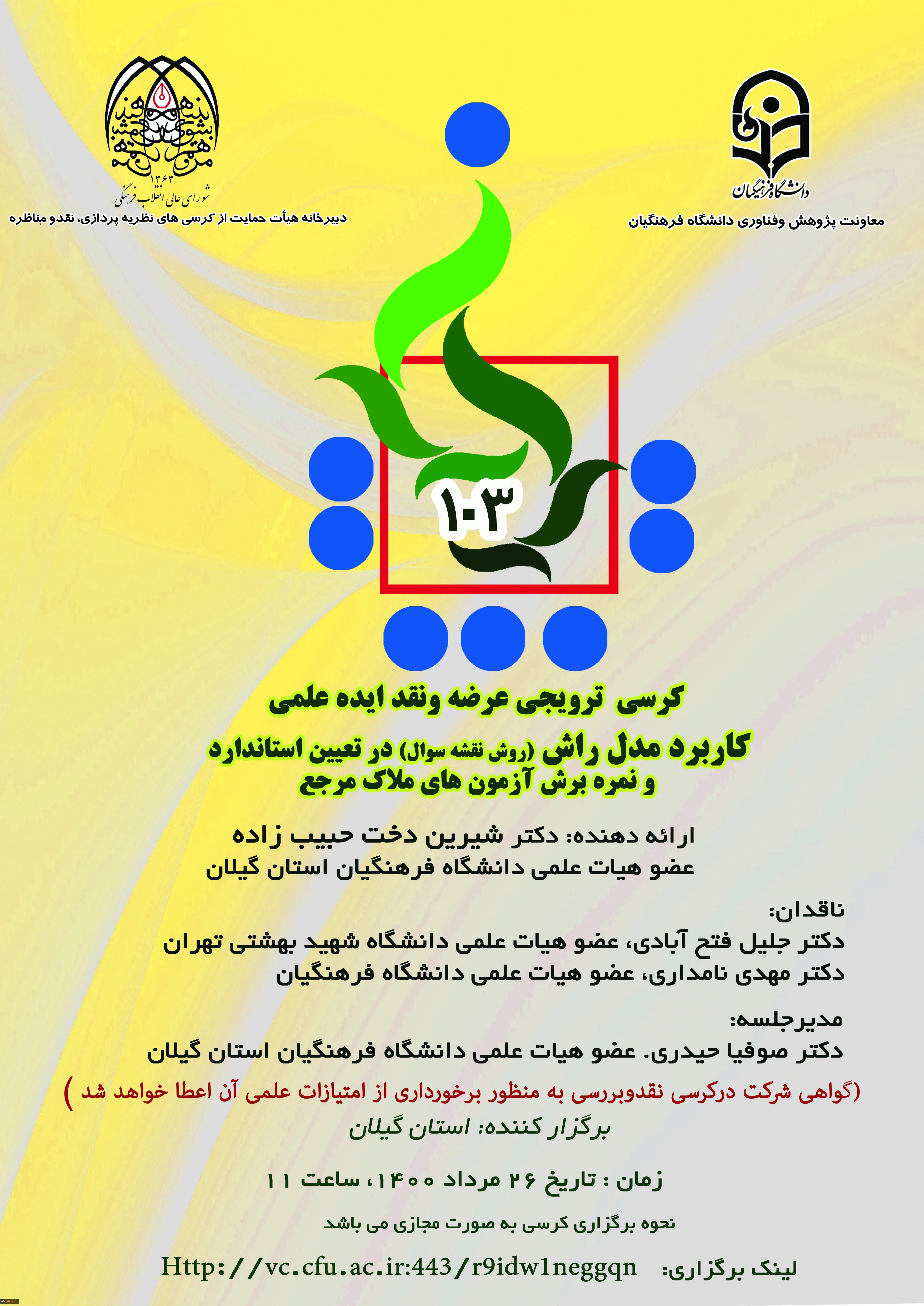 امتیاز دهید : لام تاریخ برگزاری یکصدو سومین کرسی ترویجی عرضه ونقد ایده علمی 2 دوشنبه 11 مرداد 1400 ساعت 13:22