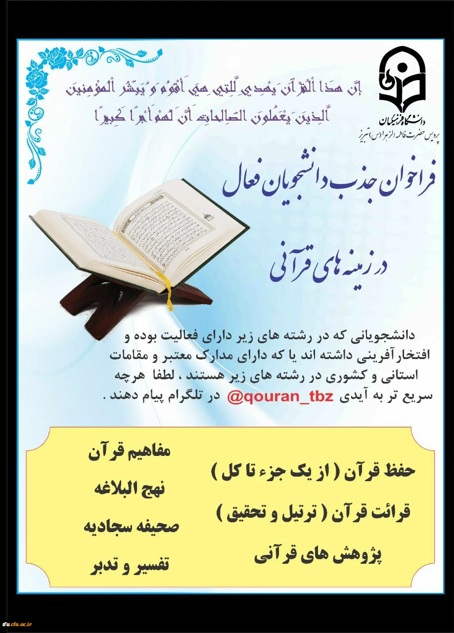 فراخوان جذب دانشجویان فعال در زمینه قرآنی 3