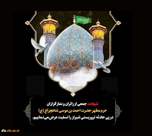 شهادت جمعی از هموطنان شریف و مظلوم در حادثه تروریستی حمله به آستان متبرک شاهچراغ شیراز را تسلیت عرض می نماییم 2