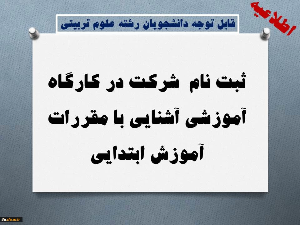 ثبت نام  شرکت در کارگاه آموزشی آشنایی با مقررات آموزش ابتدایی