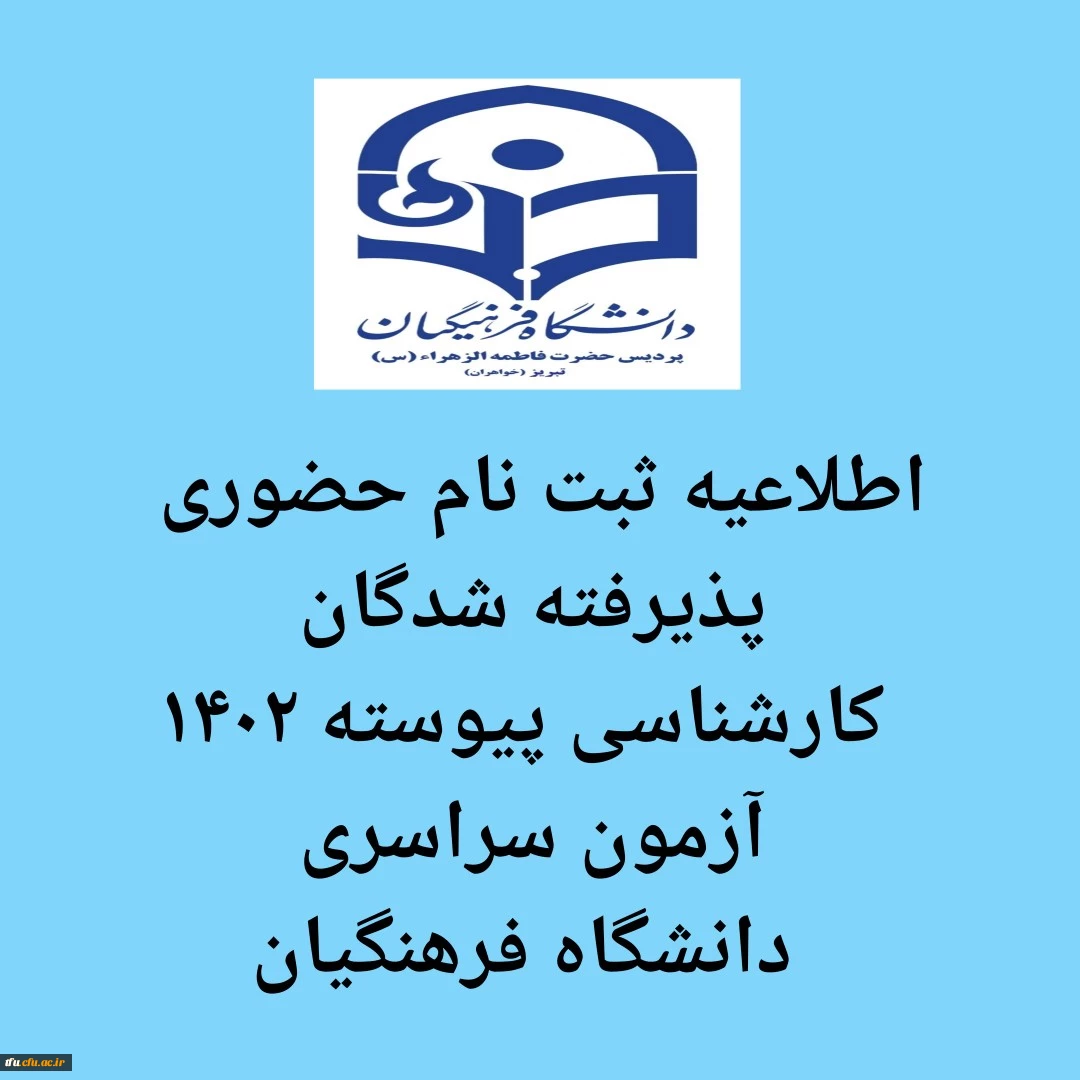 اطلاعیه ثبت نام حضوری پذیرفته شدگان کارشناسی پیوسته 1402 آزمون سراسری دانشگاه فرهنگیان 2