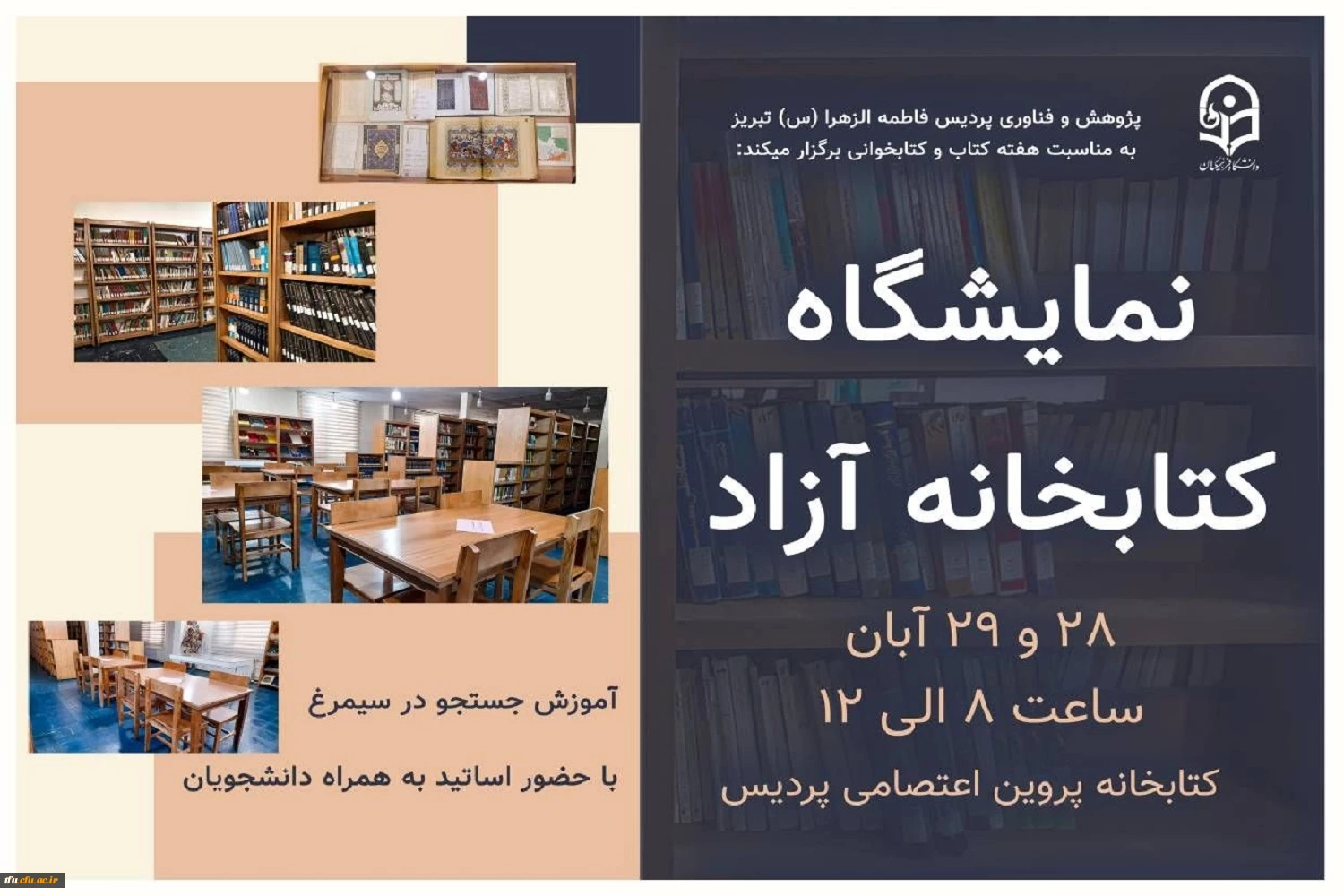 واحد پژوهش و فناوری پردیس فاطمة الزهرا ( س) تبریز به مناسبت هفته کتاب و کتابخوانی برگزار کرد: نمایشگاه کتابخانه آزاد ونمایشگاه کتاب : 2