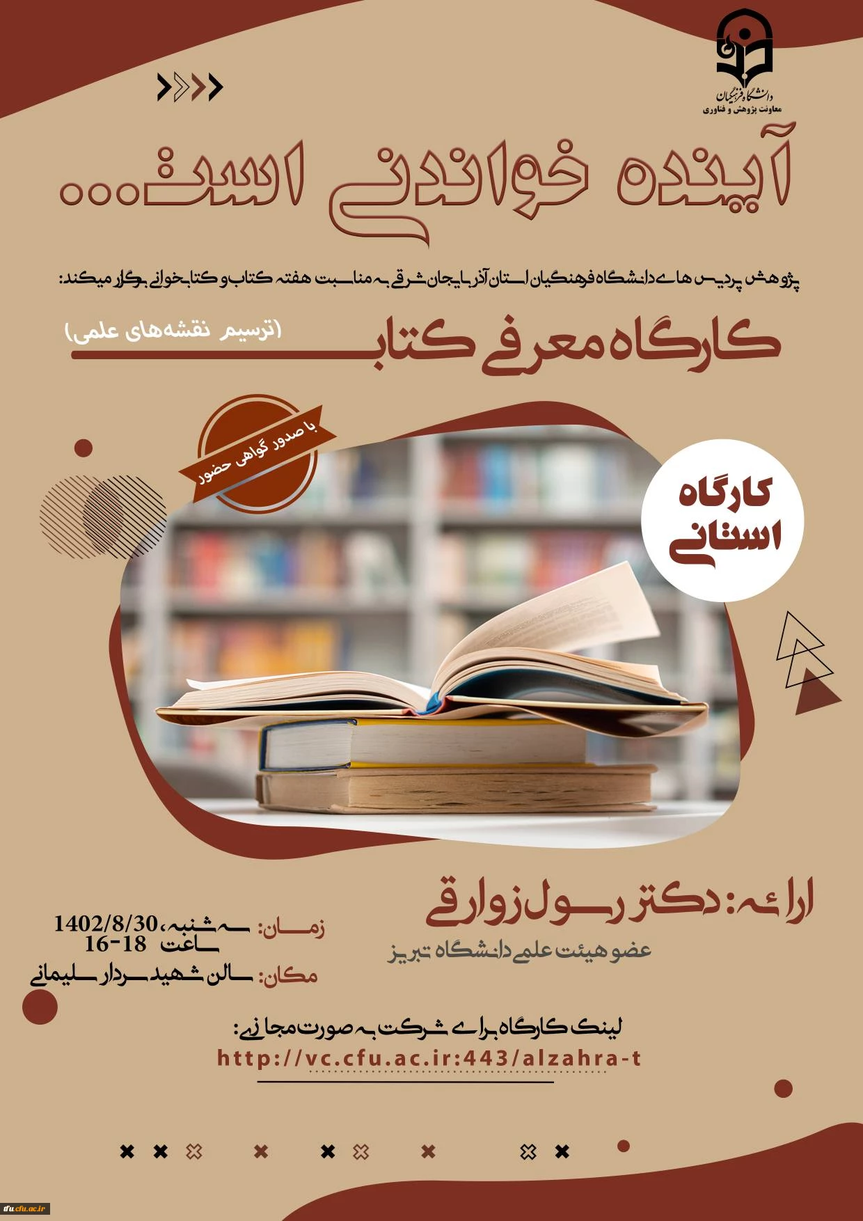 امتیاز دهید : کارگاه معرفی کتاب ترسیم نقشه های علمی: اصول فنون و ابزارها 2 سهشنبه 30 آبان 1402 ساعت 7:47