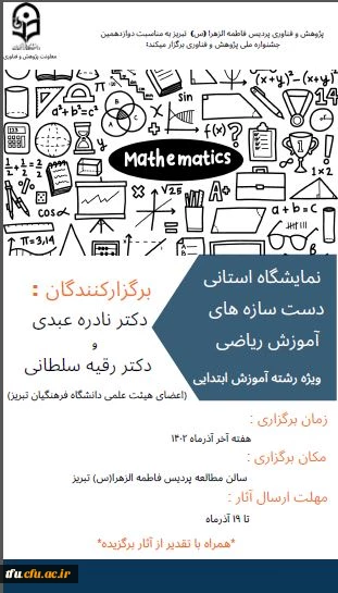 امتیاز دهید : نمایشگاه استانی دست سازه های آموزش ریاضی(ویژه رشته آموزش ابتدایی) 2 یکشنبه 12 آذر 1402 ساعت 11:35