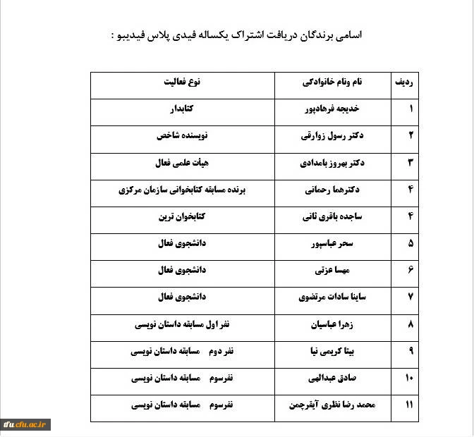 اسامی برندگان حق اشتراک سالانه فیدی پلاس فیدیبو 2